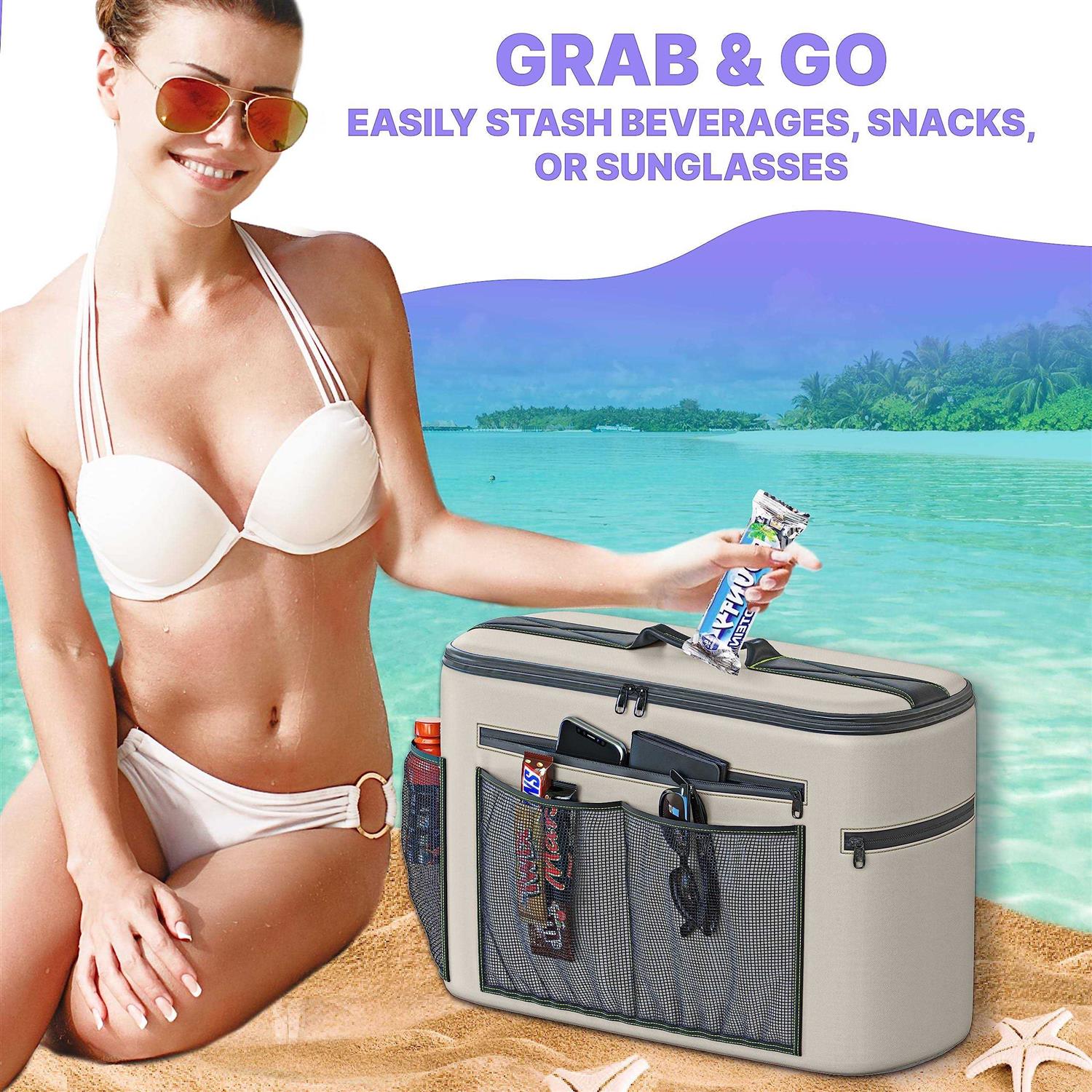 Kayaking is more fun and enjoyable with cool and delicious drinks. The Skywin kayak cooler behind the seat – a waterproof kayak seat back cooler for kayaks will help you store your drinks and keep them cool all day without getting wet from rain or splashing water. This kayak under-seat storage is compatible with kayaks that have lawn-chair seats and comes with bungee ball cords that securely fasten the cooler onto the seat. Its narrow design saves space and lets you fit other necessary tools and equipment on your kayak just a pull-behind kayak cooler. When you need to get your drink, you can conveniently open this waterproof kayak cooler with its top zipper and access the content while still in a seated position. This Kayak catch cooler is also built with a handle so you can easily carry the cooler after use. It is a waterproof cooler kayak that you can easily pull on the seat back with a cooler strap The Skywin Kayak Cooler will definitely make your next kayaking trip more convenient and fun!