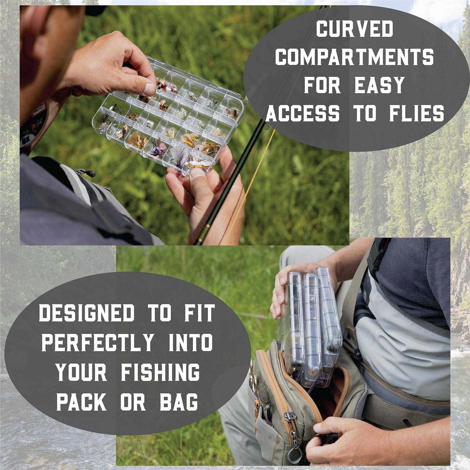 Highest Quality Materials – Our team of highly experienced fly-tyers meticulously hand-selects the highest quality fly-tying materials sourced from the USA, ensuring that each fly is crafted with the utmost attention to detail and has a realistic presentation that’s second to none. Durable Fly Box – No need to go out and buy another box to hold your flies. Our fly fishing combo includes three durable hard plastic boxes that are sure to stand the test of time and countless adventures. Large compartments protect even the most delicate dry-flies all while being designed to fit perfectly in your fly fishing vest or backpack. Ultimate Selection – This set contains one dry fly box, one wet fly box and one streamer fly box. 60 different patterns including dry flies, wet flies, nymphs, terrestrials, streamers, eggs, worms and more, with sizes ranging from 8-20. Each pattern has been hand-picked by professionals to target species including trout, bass, panfish, bluegill, and more. Designed for Ease Of Use – Our fly-fishing kit is designed with ease of use in mind, so you don’t need to worry about your skill level. Each box includes a fly identification card that is conveniently tucked in the lid, allowing you to identify any of your new flies quickly and easily. With this feature, you can spend more time matching the hatch and less time sorting through your fishing gear. Introducing the ultimate fly fishing kit for beginners and experts alike! This waterproof fly fishing box is filled with a variety of high-quality flies for any fishing adventure. Our barbed and barbless fly fishing flies are perfect for catch-and-release fishing, and our trout flies are great for freshwater fishing. With articulated flies, chubby chernobyl fly, stimulator flies, and wooly buggers, this fly box has everything you need for successful bass fishing, trout fishing, and carp fishing. Our fly fishing accessories include fly boxes for fly fishing, flies for fly fishing, and trout fly identification cards. The fly box set also makes the perfect fly fishing gifts for men or the perfect kids fly fishing kit. Not only does this fly fishing kit come with a wide variety of fishing gear, but it’s also incredibly compact and easy to transport. But this fly fishing kit isn’t just for beginners – it’s also great for experienced anglers who are looking for a complete set of barbless fly fishing flies