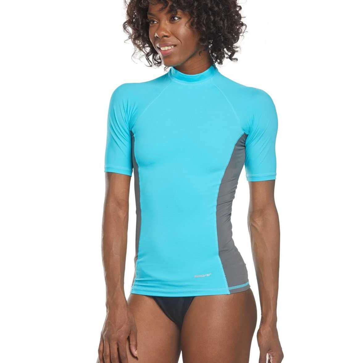 Sporti Women’s Short Sleeve Shirt UPF 50+ Sport Fit Rash Guard (Small, Aqua Blue/Grey)