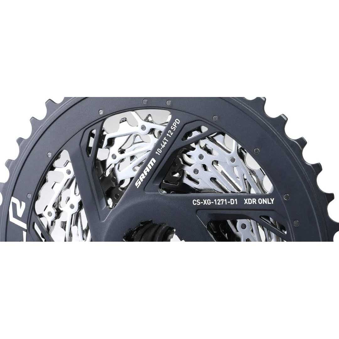 SRAM Force XPLR XG-1271 12-Speed Cassette The SRAM Force XPLR XG-1271 12-Speed Cassette features SRAM’s X-Range which provides a 440% range for smooth gear progression when you’re climbing, but also tight jumps on the high end for fast gravel roads and asphalt. In addition, with SRAM’s MINI CLUSTER design, the four small cogs are machined out of a single block of billet steel. This results in a light, durable cassette with smooth shifting. The XPLR XG-1271 12-Speed Cassette is intended for use with a XPLR 1x rear derailleur and a XTR driver body. Technology MINI CLUSTER Combines four small cogs that are CNC machined out of a single block of billet steel with eight additional cogs pinned together. This results in a light, durable cassette with smooth shifting. XDR Driver Body Universal mounting system for cassettes with fewer than 11 teeth and allows for lighter and more versatile drivetrains. X-Range X-Range gearing offers a larger range and a smoother gear progression, helping ensure you’re always in the right gear.
