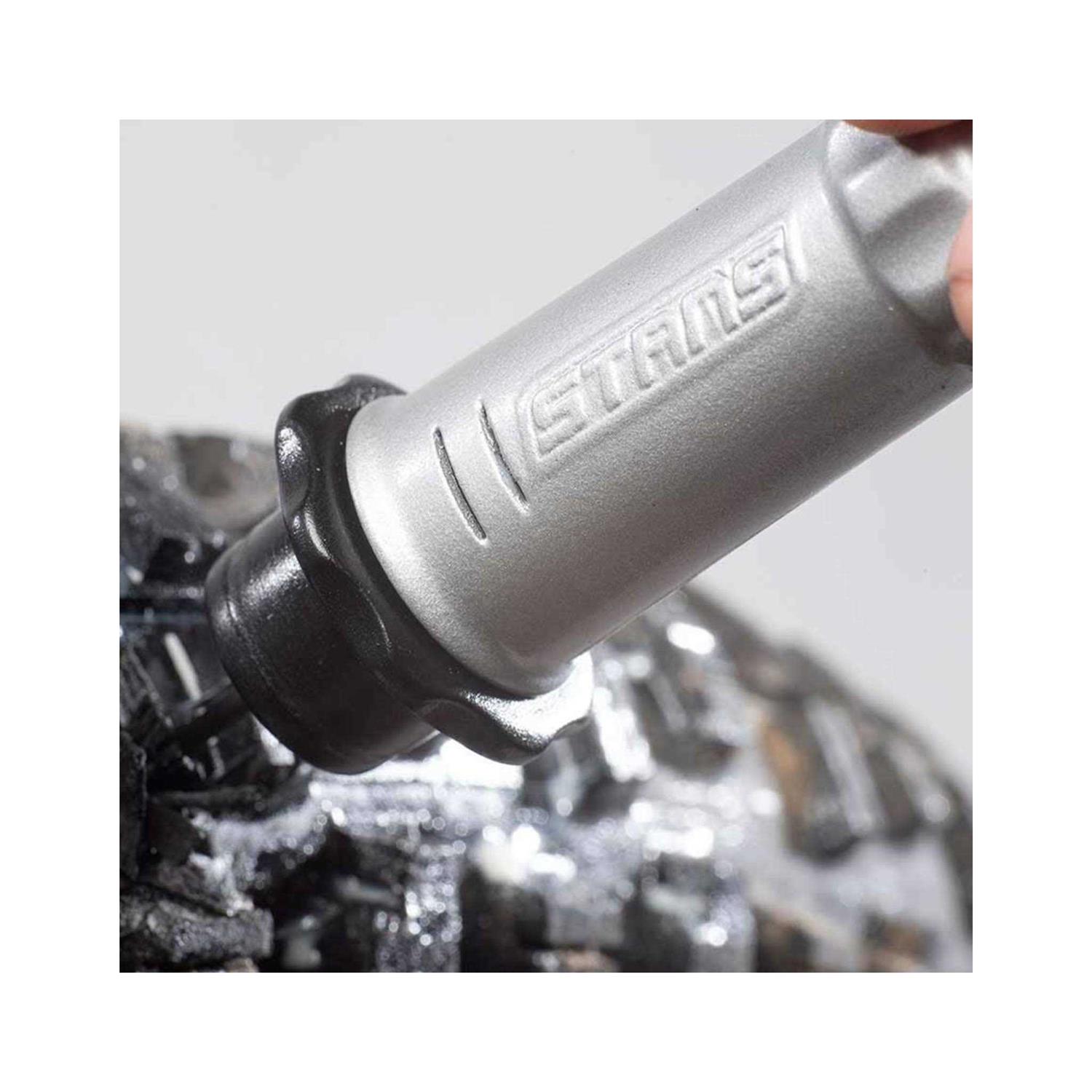 What is the DART? The DART is Stan’s solution to fix damaged tires faster, easier, and better than existing plug tools. While traditional tire plugs try to wedge rubber strips into a puncture, the DART creates a chemical reaction with your Stan’s sealant to quickly form a permanent airtight bond. The dual actions of the DART include the mechanical fill created by inserting a piece of material into the puncture, and a chemical reaction that activates our sealant. The DART is the best solution for repairing and sealing slices and large punctures in tubeless mountain, road, and gravel bike tires. Why is it better? Repairs large punctures and slices Reacts with Stan’s sealant to form an instant, airtight seal Barbed plastic tip anchors into tire and will not pull out when riding Flexible material and laser-cut shape conforms to puncture and bonds with sealant Wears off clean, no trimming needed, and can not be felt while riding, even on road tires Lightweight, compact tool fits the shape of your hand for more precise use and includes built-in valve core remover Includes two pre-loaded DARTs for sealing multiple and larger punctures Clear caps keep DARTs clean and unthread quickly for fast deployment Simple and easy to refill Safer, More Effective Tubeless Tire Repair DART’s patent pending ability to react with latex sealant makes it more effective than traditional tire plugs, and its mechanical features are also innovative. Traditional tire plug tools were developed originally for car tires, and their long, sharp tips can cause damage to rim tape or cut hands. Even worse, their plugs can actually expand many punctures because they rely on a tight fit to hold them in place. In contrast, the DART’s plastic tip is barbed to anchor firmly in place and stay put during even the most aggressive riding while being safer for rims, rim tape and your hands.
