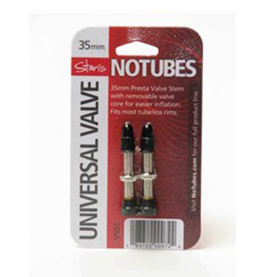 Stan’s lightweight aluminum valve stems are half the weight of our standard brass valves, weighing only 8g, 9g, or 10g per valve respectively for the 35mm, 44mm, and 55mm models. Secure round base is compatible with most tubeless rims and a perfect fit for all Stan’s BST and BST-R rims. The removable valve core makes adding sealant easy. Fits up to an 8mm valve hole. Available in black, red, blue, green, and orange. Sold as a pair.