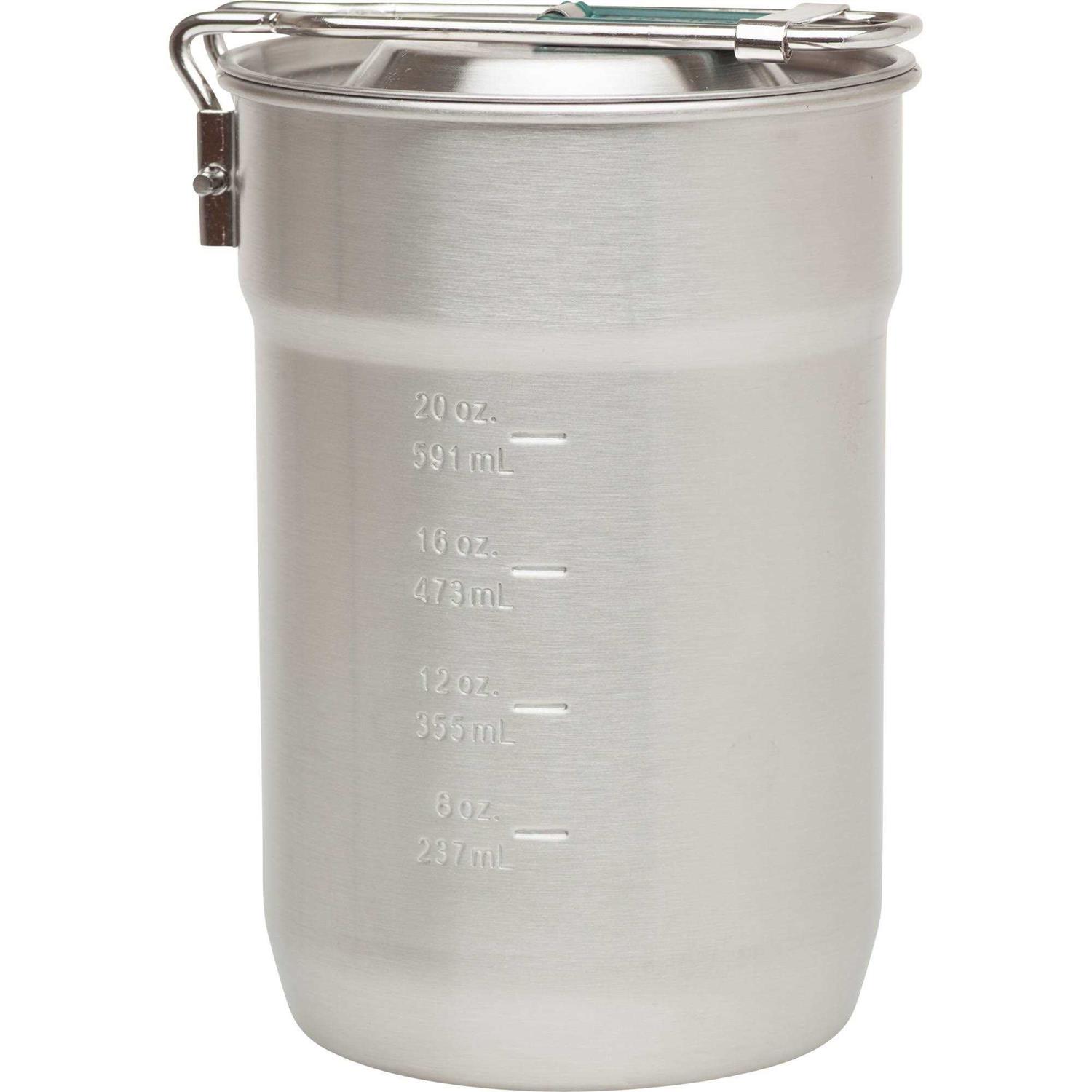 Stanley Adventure 24oz Stainless Steel Camp Cook Set is an integrated solution that brings the comforts of home cooking to the camp. 18/8 stainless steel wont rust, naturally BPA free. Locking handle extends for cooking, folds to save space. Vented lid lets you cook on camp stoves or grills. This cook set includes: 2-nesting 10oz insulated cups. Also is dishwasher safe.