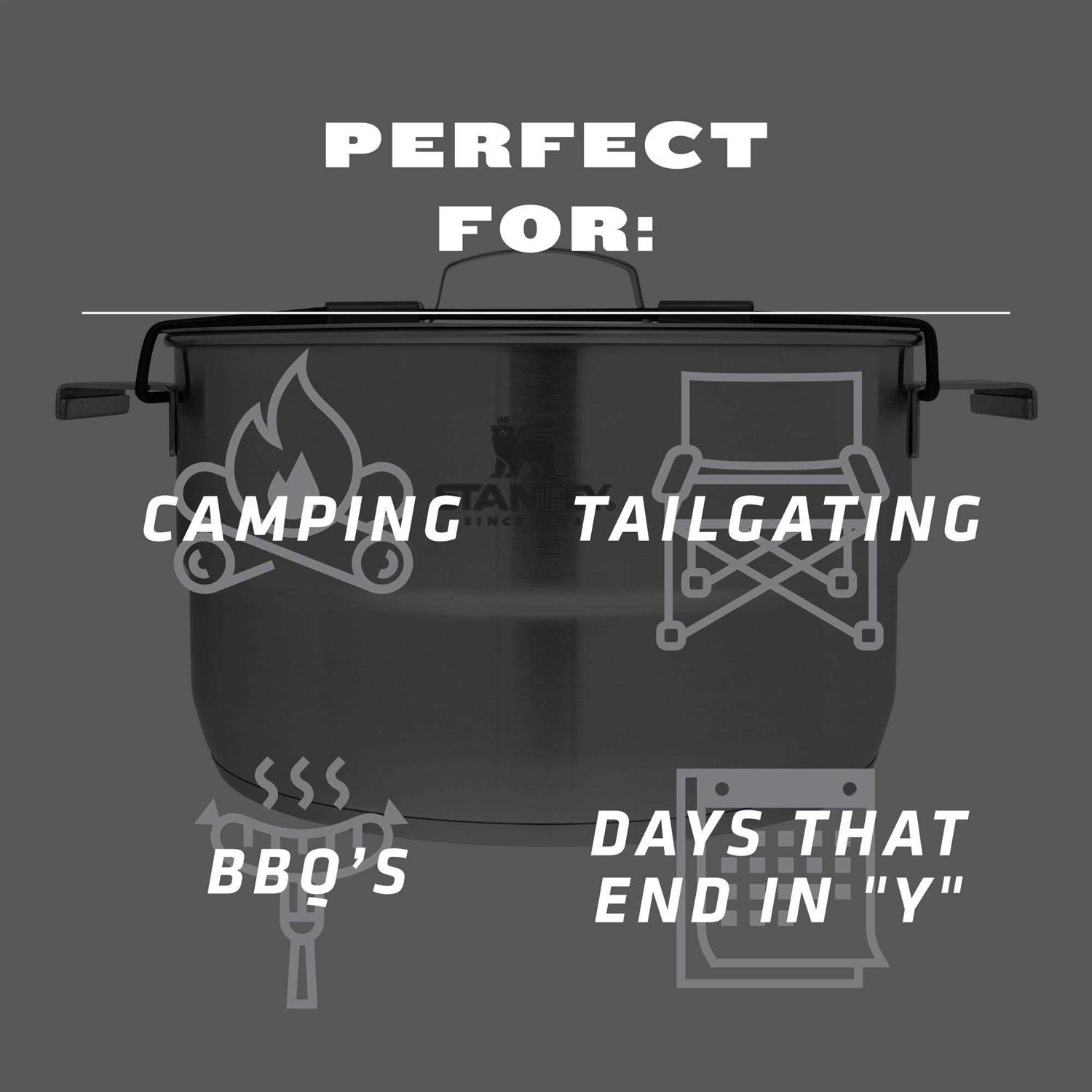 Whipping up delicious meals at camp is a breeze with this Stanley Adventure Pro Cook Set. It comes with everything you need to create a tasty meal without breaking a sweat. The best part? When dinner’s done, cleanup is easy thanks to stainless steel construction. And it all nests together to make packing up a cinch. It’s backed with legendary technologies that do what they say they do—or Stanley will replace it. Guaranteed. BPS- and BPA-free construction is dishwasher safe Features Stanley’s limited Built for Life warrantySet Includes: 18/8 stainless steel stock pot (4.75-Qt. /4.5L) 18/8 Stainless steel sauce pan (1.9-Qt. /1.8L) Stainless steel vented lids 3-ply frying pan (8.5 inch diameter) Collapsible cutting board Spatula with extending handle Serving spoon with extending handle Locking bungee 2 silicone trivets Order today!