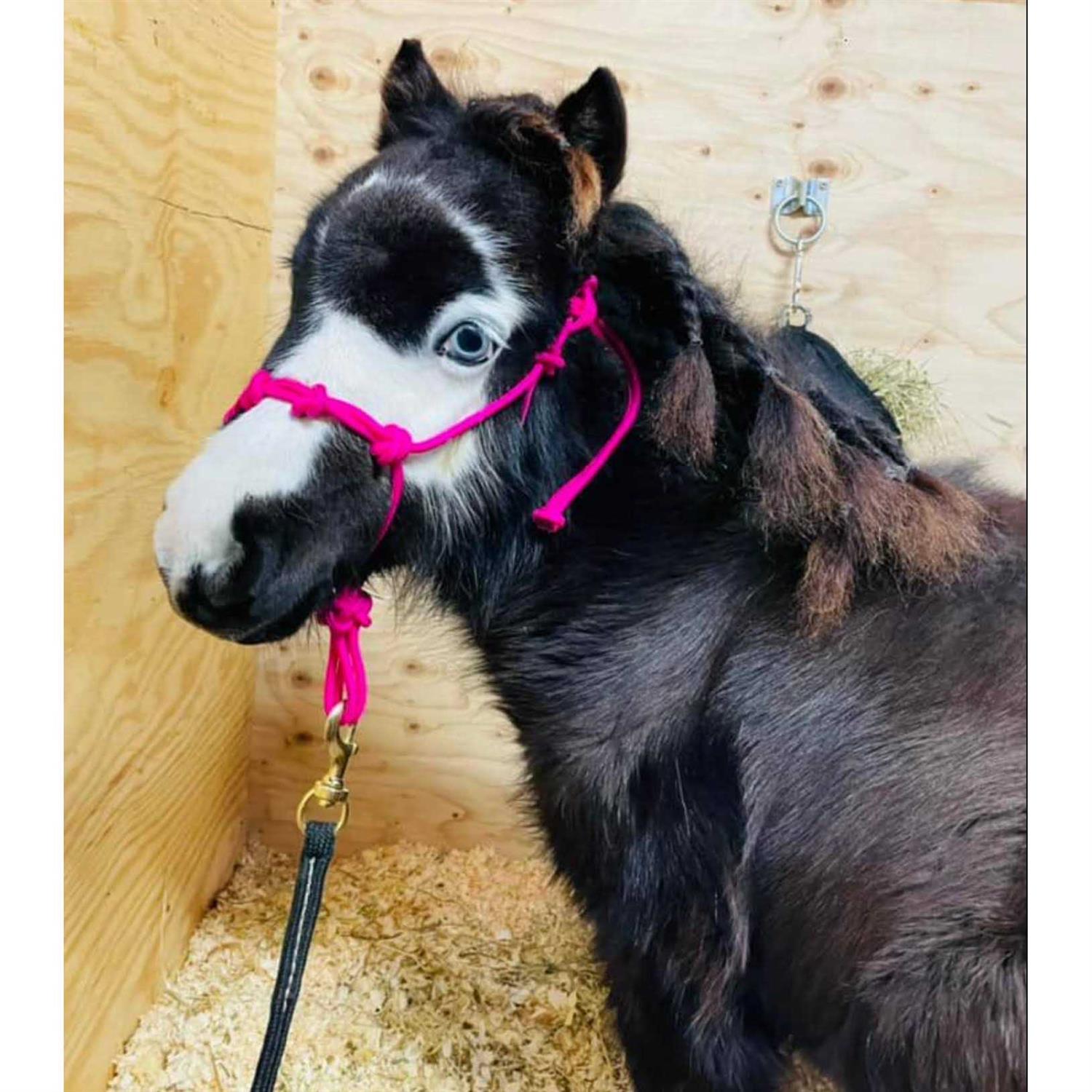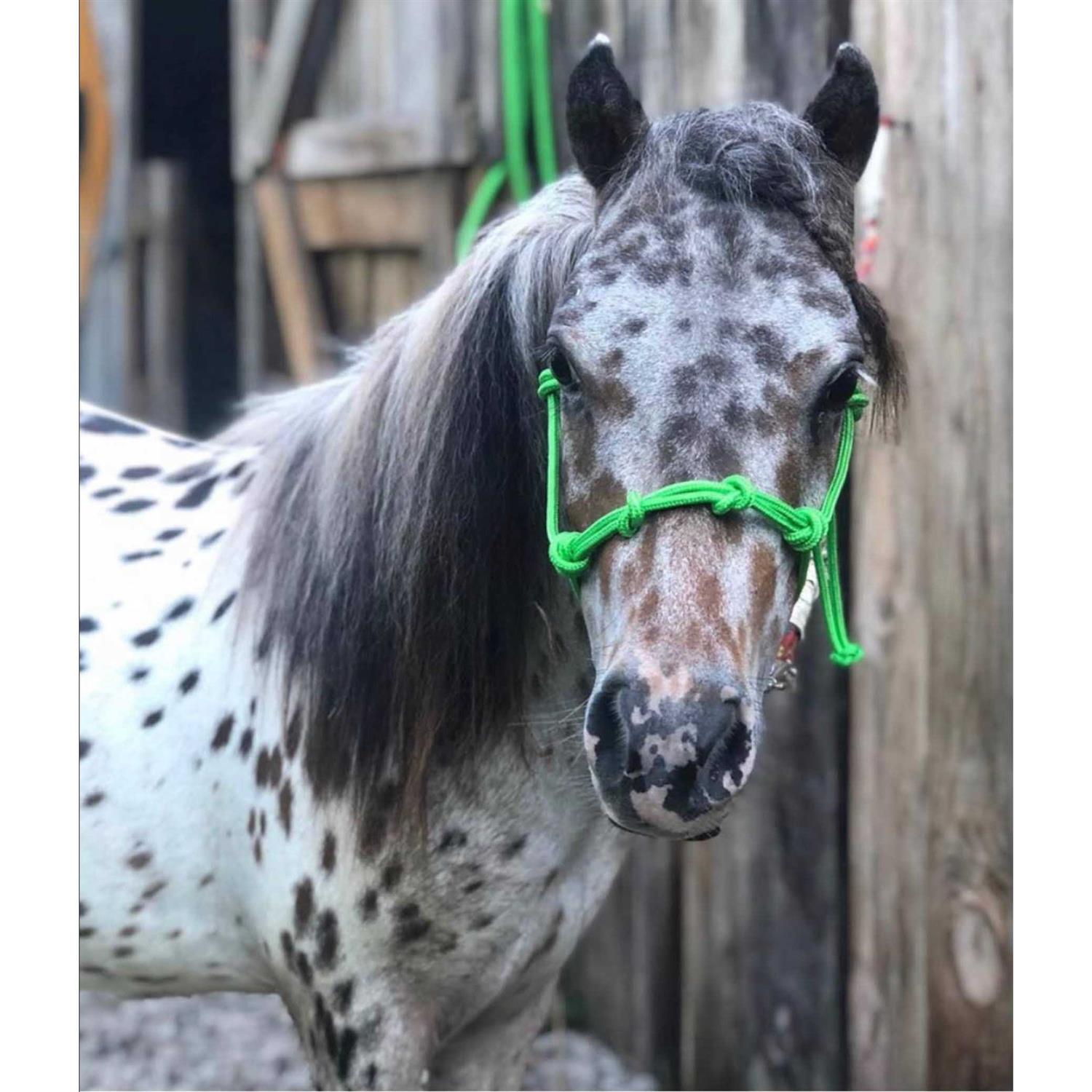 Miniature Horse – Pony 4 Knot Rope Halters by Star Point Horsemanship Enjoy the control, connection and body language enhancement of the globally sold and proven 4 knotted Miniature Horse Training Halter. Designed in 6 sizes to fit A & B class Miniatures and Shetland Ponies, teach suppleness gently without having to introduce the chain too prematurely in training. 5 star rated and a best seller Unique sizing to fit Miniature Horses and Ponies 6 sizes to fit Weanling Minis all the way up to large Ponies. Globally sold & proven Mini-Pony 4 Knot Rope Training Halter. Ideal for Miniature Horses, Ponies, Donkeys, Goats and Livestock. This halter helps you cue, guide and refine your Miniature Horse/Pony to success through Groundwork, Longe Line, Liberty, Therapy & Trick Training. SIZE CHART IN PHOTOS MOST MINIATURE HORSES FIT IN SIZE MEDIUM IF THEY ARE 32-36″ IN HEIGHT. If your Mini has a stocky head and is between 28-31″ in height, also purchase MEDIUM SIZE. If they are of average or finer size, SMALL size should fit well. MEDIUM & LARGE SIZES fit weanling full size horses well. XL size fit some yearling full size horses.