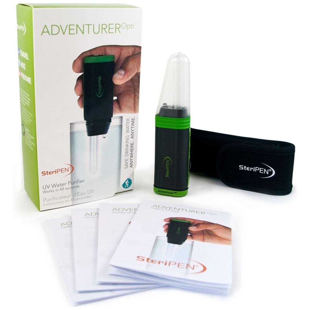 Backpacker Editor’s Choice 2011. Germicidal UV light destroys viruses, bacteria and protozoa. 8,000 treatments. Purifies 0.5 L (16 oz.) of water in 48 seconds or 1 L (32 oz.) in 90 seconds. Pocket size rugged purifier weighs only 3.6 oz. with 2 CR123 batteries (included!). Optical water sensor also serves as integrated LED flashlight. The handy Steripen Adventurer Opti is powered by lithium batteries and can be used to treat 0.5 or 1.0L of water. This small UV water purifier weighs 103 grams and can easily be stowed in your travel pharmacy or backpack. The Adventurer Opti has a capacity of around 8000 uses before it needs to be replaced. Ultraviolet (UV-C) light rays safely purify clear water by destroying 99.9% of protozoa (including Giardia and Cryptosporidia), bacteria and even viruses The revolutionary optical water sensor doubles as an integrated LED flashlight. Hold down the activation button for three seconds to illuminate the darkness When the treatment is complete, LED indicators flash to let you know that the water is safe to drink. Use only on clear water, as cloudy, sediment-laden water hinders effectiveness.