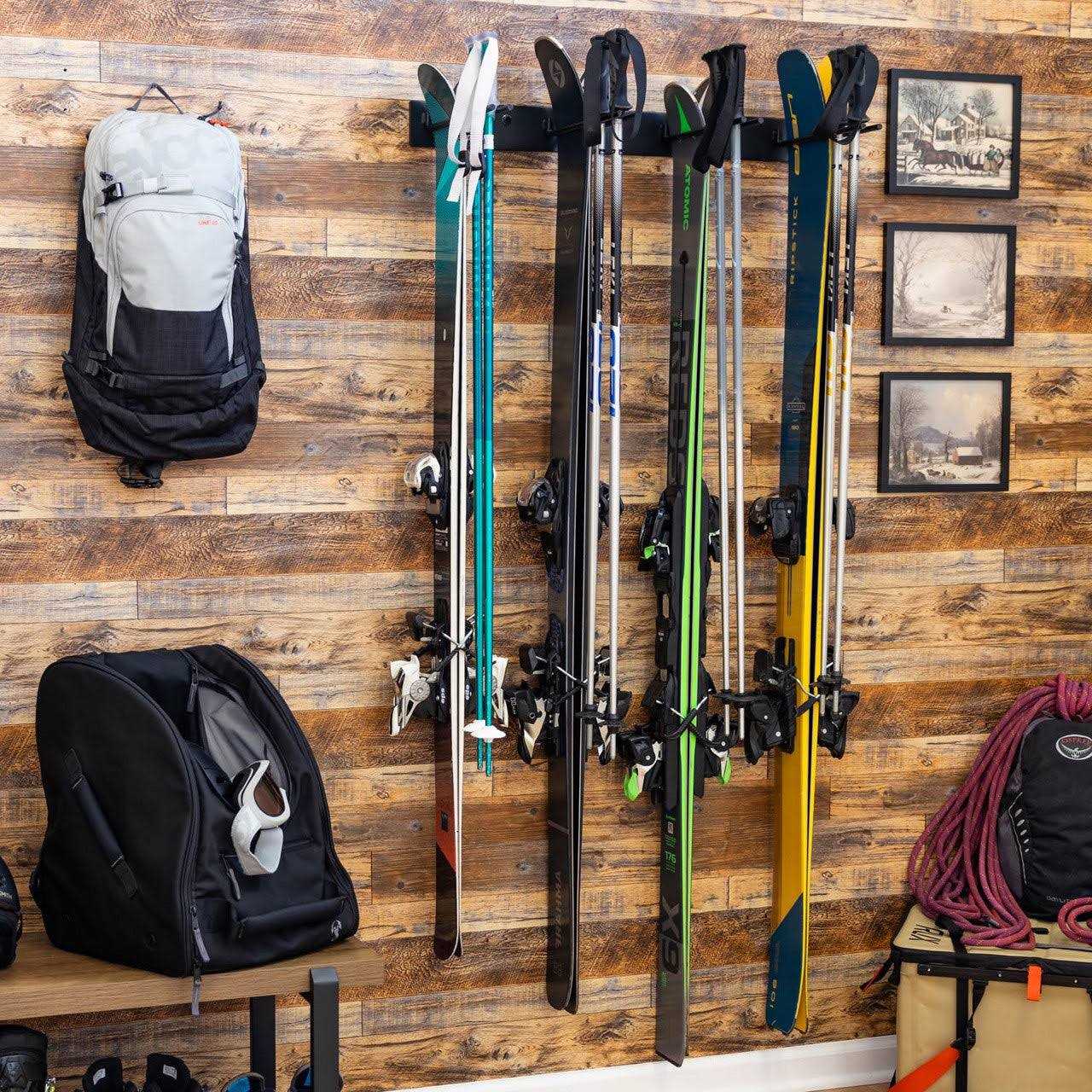 - Sturdy design designed to hold over 100 lbs Stores all your skis