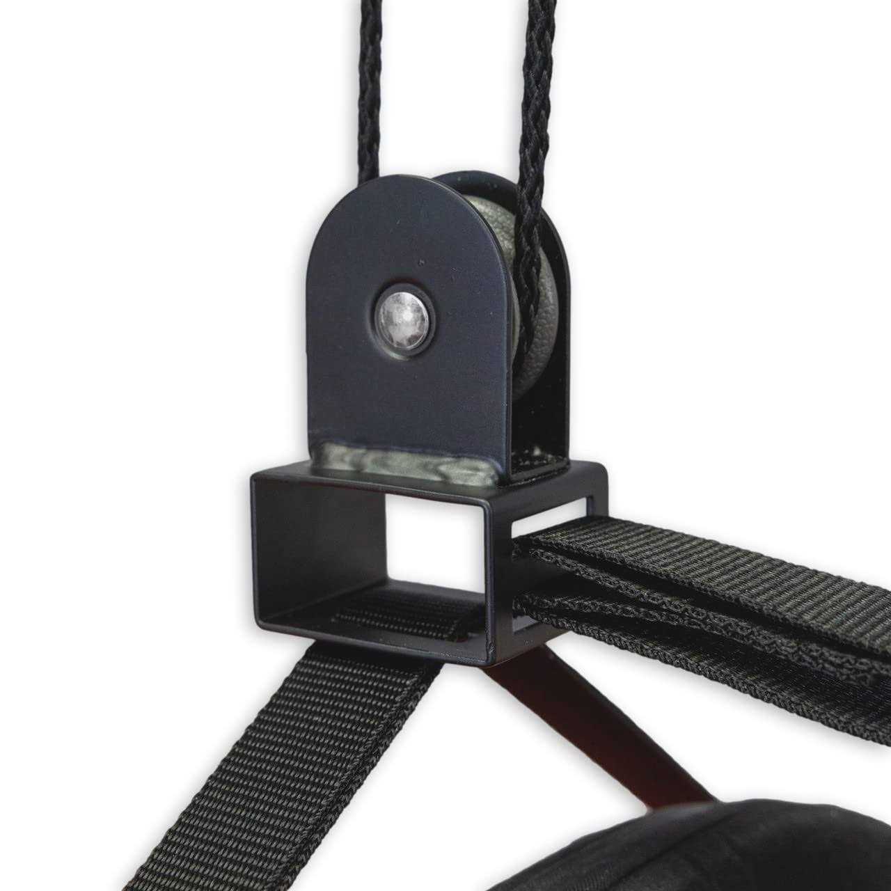 Space-Efficient The Essential Garage Ceiling Hoist is the perfect solution to store your standup paddle board or surfboard while providing clear floor space. Industrial Grade Built from solid steel, the ceiling brackets support up to 150 lbs. The high-strength loading straps and rope ensure your boards are securely fastened to the ceiling for worry-free storage. Two Size Options Choose from the 8-10 ft Ceiling or 10-14 ft Ceiling hoist to fit your space. Easy to Install The patent pending design allows you to mount the brackets parallel or perpendicular to you ceiling joists. Quality mounting hardware is included for maximum strength. Multi-Purpose The hoist system is also perfect for storing kayaks, canoes, ladders, rooftop cargo boxes, and more!