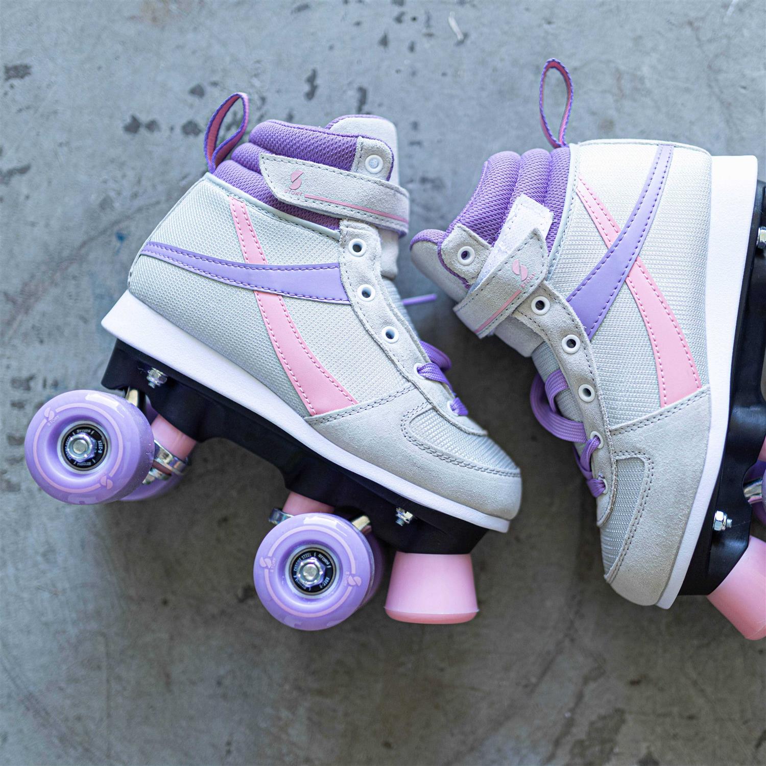 The Story Cooper are a light pair of freeride side-by-side skates made for both young girls and ladies that fancies pastel colours and retro styled allround rollerskates. Your riding abilities doesn’t matter, the Story Cooper is both for beginners and experienced skaters. So, go steal a moment on the streets or in an indoor skating park with these sly Cooper rollerskates by Story! The Story Cooper skates are made of materials guaranteeing you high performance and comfort for all your rides. The inner part of the boots has been cushioned, so to reduce shock while riding on uneven surfaces or over small bumps on roads. This alongside the high-cut sneaker design gives an absolute comfort fit and adds to the compelling street look of the skates.These Story Cooper skates have been manufactured with ABEC-7 bearings, PU bushings and PU wheels of an 82 A hardness. Together this grants a very high-speed rolling quality pair of rollerskates, which easily follows along your movements during sharp turns.A sweet treat of a pair of side-by-side skates that surely will have you rolling round town for hours on end. So, if that sounds like something you’d enjoy, then the Story Cooper are the rollerskates just for you!
