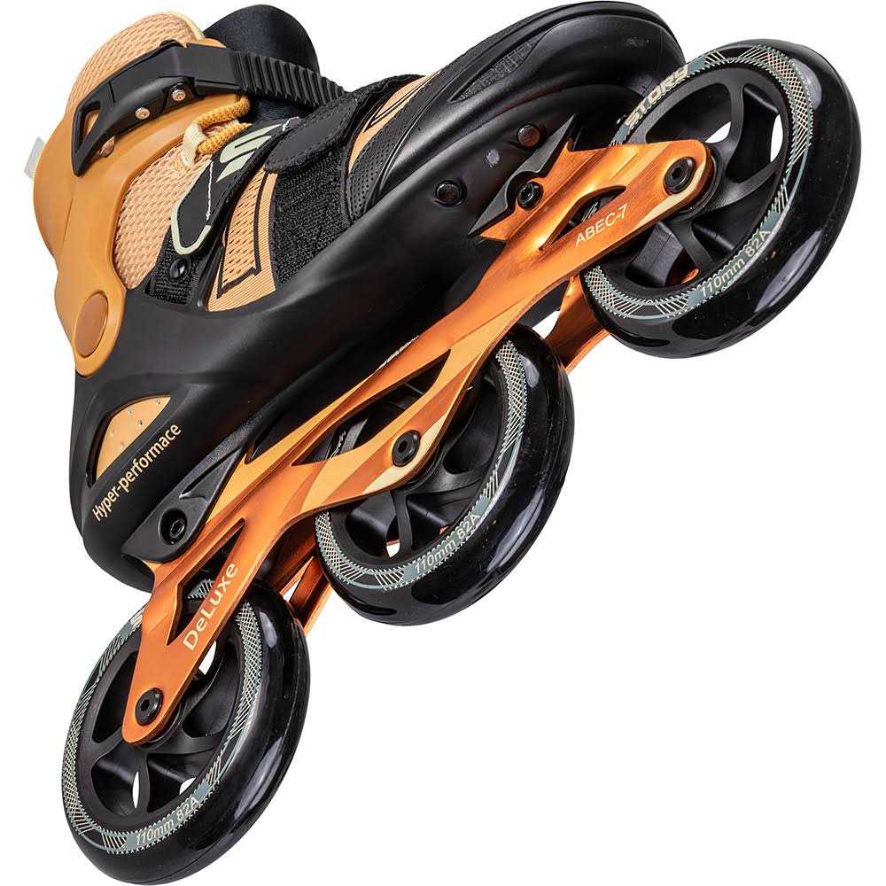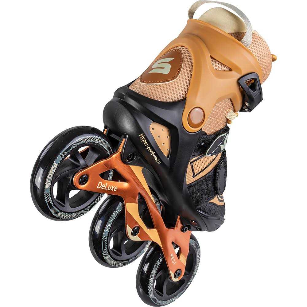 The Story Peak inline roller skates are for everyone who loves racing, longer rides and high speeds. They are suitable for both beginners and professional skaters, who want fast paced rides on the streets. Roller skates for long trips and race require high stability and large wheels. That’s why Story Peak has 110 mm size wheels. And to make them even faster and better respond to your movements, the wheels are of the hardness 82 A with ABEC-7 ball bearings. Story Peak has an aluminum blade. This strengthens both the roller skate as a whole, but also makes your rides significantly better, as it will be easier to achieve speeds. The material for the skate boot is a combination of different materials. For the outer part of the boot, there is a layer of hard plastic, which strengthens the boot and supports your foot. In addition, textiles and soft foam have been used. These provide high comfort and make your rides extremely comfortable – even after several hours of use.