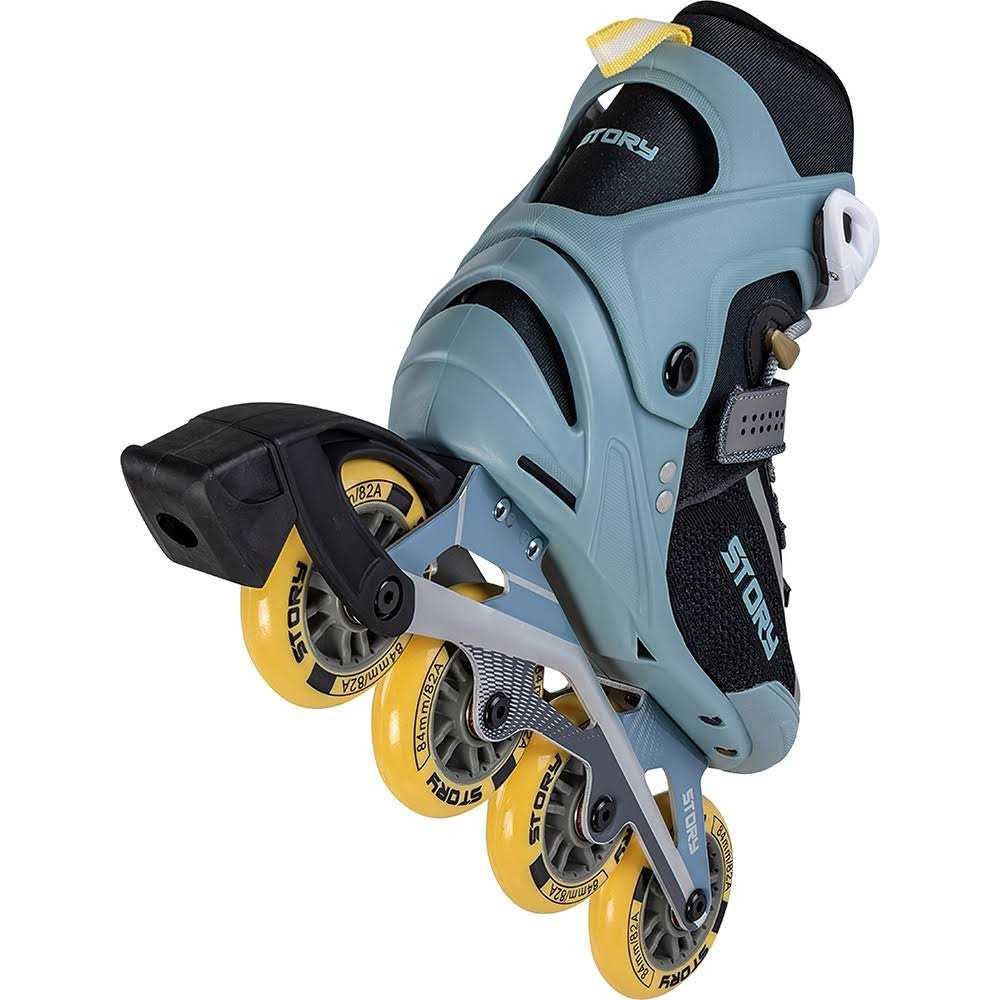 Story Union are some high quality inline roller skates for all adults. They are well suited for a bit of everything within the roller skating sport. Whether you are for short trips or smaller jumps and easier types of tricks, then these quality roller skates will your ideal choice. These roller skates have 4 wheels with a size of 84 mm. The wheels are of the hardness 82 A and they got ABEC-7 ball bearings. All these details contribute to wheels, which roll both well and fast, but are also easy to control during maneuvers and turns. The material for the blade is aluminum. This is a relatively light and strong metal, which gives strength to the entire construction of the roller skates – as well as increases the durability and improves your acceleration. The boot itself consists of textile, some soft foam and a protective construction of hard plastic. The inner materials provide comfort and breathability for the feet. While the hard plastic solidly assembles the boot for a higher quality roller skate. Story Union unites a functional and stylish design, for a pair of high-end inline roller skates for adults. Perfect for a bit of everything within the roller skating sport. Regardless of your current level as a beginner or professional roller skater!