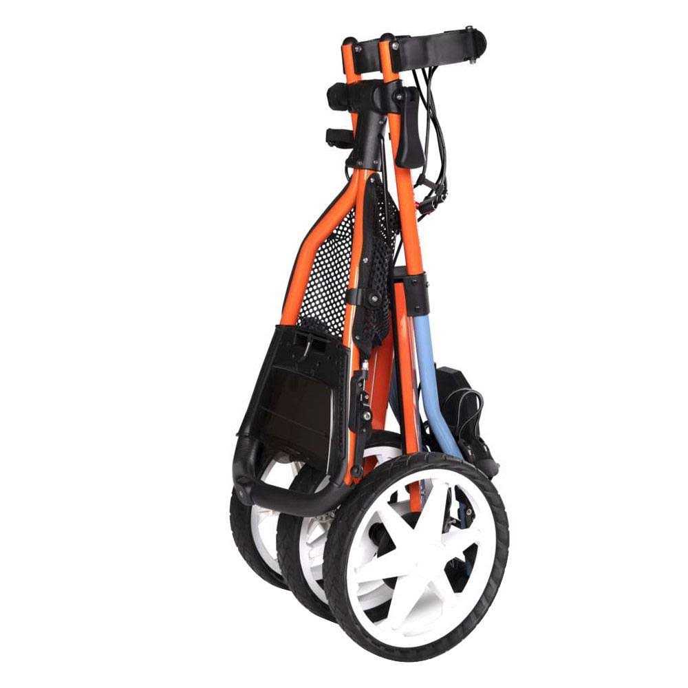 The Sun Mountain V1R Speed Cart is a top-tier golf cart designed to enhance the walking experience on the course. Its standout feature is the ability to fold down in just two simple steps, making it incredibly convenient for storage and transportation. The cart’s design focuses on ergonomics and comfort, featuring an adjustable handle that can be tailored to suit golfers of different heights, ensuring ease of maneuverability. Functionalities of the V1R Speed Cart include a mesh accessories tray, ideal for keeping golf essentials within easy reach. The cart also boasts improved upper and lower bag brackets, which can be effortlessly adjusted to securely hold a golf bag, adding to its stability and safety for your equipment. In terms of specifications, the V1R Speed Cart is impressively lightweight at only 8.1kg, enhancing its portability. Its folded dimensions are W 97 cm x 41 cm x 33 cm, highlighting its compact nature. The cart is available in a large range of colors, allowing golfers to choose one that best fits their style. Rated 5 Stars by Golf Monthly, the Sun Mountain V1R Speed Cart is highly acclaimed for its exceptional stability, functionality, and ease of use. Golf Monthly specifically notes, The latest Speed Cart release is exceptionally stable, highly functional, and easy to manoeuvre around the course. Most importantly, however, it makes walking more enjoyable for golfers. This endorsement cements the V1R Speed Cart as an excellent choice for golfers seeking a top-quality, user-friendly, and enjoyable golf cart experience.