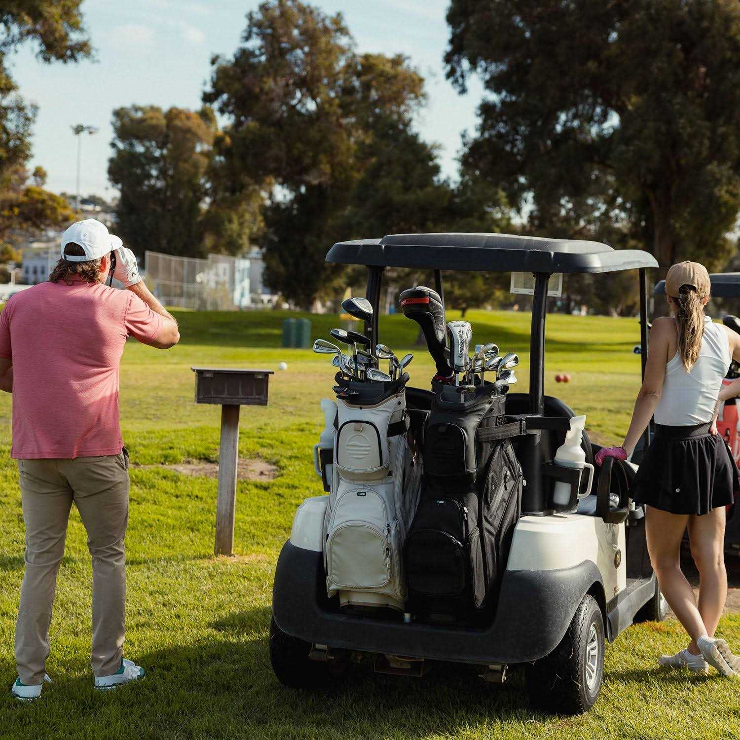Enhance your golf game with our sleek Cart Bag in Matte Black—compact, versatile, and crafted for convenience. Perfect for push and golf carts, these bags redefine on-course style and functionality