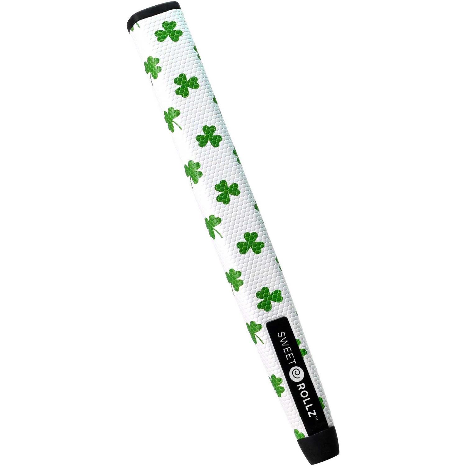 Multiple birdies are better than a pot of gold. No luck needed with this grip. Description White with green clovers.Material Each grip material is made from a fabric reinforced polyurethane sheet with a thermoformed rubber inner structural frame. A layer of adhesive is added to the rubber, then the grip is hand-stitched together over the rubber frame (similar to the process used in the stitched leather steering wheel in a Porsche). Feel The stitched synthetic urethane grip incorporates a low-profile embossed honeycomb pattern which allows the feel of the putt to transfer seamlessly into your palms – for the ultimate feedback while putting.