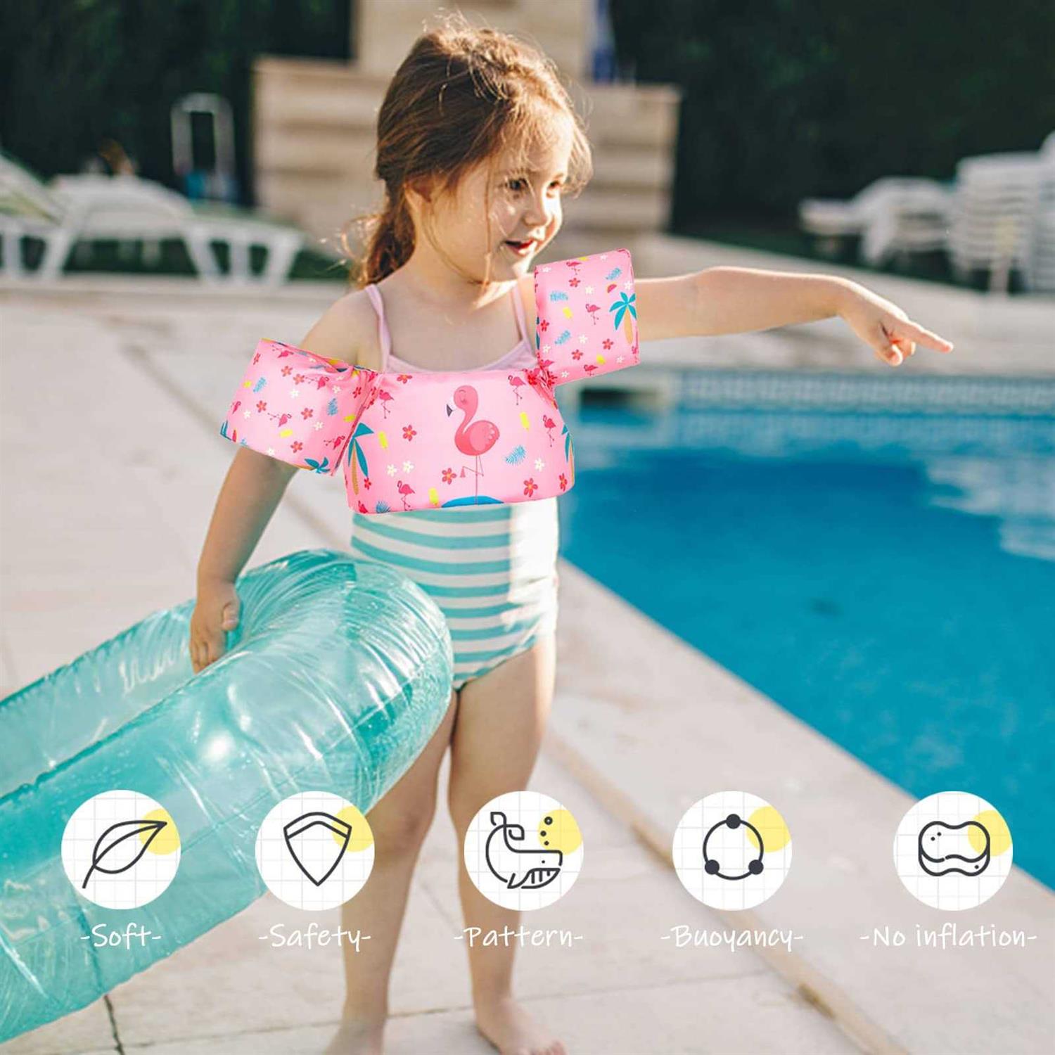 Suitable Age & Weight: The swim life vest fits for 2-6 years old child (Buoyancy in the 30-55lbs of kids use) Lovely cartoon design make our kids floaties even more attractive and easy to spot in crowded pool areas. Comfortable Material: Made of Polyester +Waterproof non-woven + Foam foats.heavy stitching, against ripping added for extra security. Security Protection and Adjustable Buckle: This swim vest for kids adjustable straps and security buckle at the kid’s back.keeps the vest from sliding off during use, You will be more assured of your baby’s safety when they are swimming. Easy to Wear: Swim aids for toddlers are immediately use; simply pull over arms and buckle up; comfortable to wear due to the soft arm band construction.Swimming floats for kids are great for beginners when used at a pool, beach, sea, ocean, lake & river. Note: This swim life vest is a child training life jacket, allowing them to learn swimming in a safe condition. This is a swim aid and should not be used as life-preserving equipment. Adult supervision is required at all times. strong Kids Pool Floats Swim Vest Life Jacket for 2-6 years old, Toddler Arm Floaties Swim Aid with Water Wings and Shoulder Strap, for 30-50 lbs Boys and Girls, Children Puddle/Beach, As A Jumper /strong p Specifications p Style: Cute Cartoon p