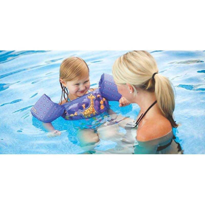 The SwimWays Swim Trainer Life Jacket is a U.S. Coast Guard-approved personal flotation device for kids. This kids life vest features built-in chest and arm flotation designed for greater mobility in the water. With the one-of-a-kind fun squirt feature, your child can squeeze and release the sharks to fill it with water, and squeeze again to make it squirt! The adjustable back buckle is convenient to parents for easy on and easy off, but is out of reach for kids so they can’t remove the vest on their own. The soft fabric cover is comfortable to wear and kids love the bright colors and characters. Fits most children weighing 30-50 lb (14-23 kg).