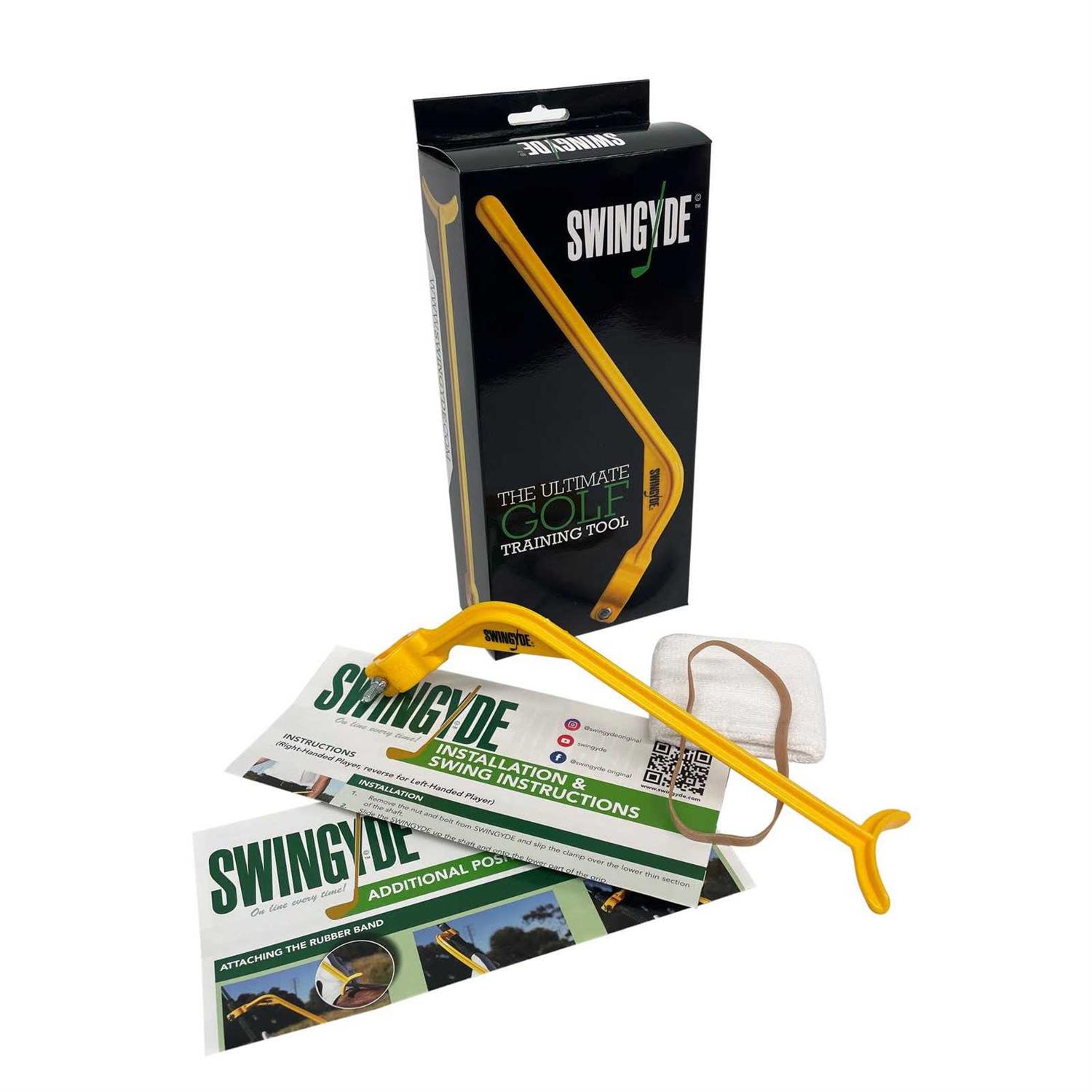 Updated for 2023 – now includes link to an online training video. No more DVD. Swingyde is a lightweight golf training aid designed to create the correct golf swing positions. Lightweight and easy to attach. Corrects club face alignment. Improves grip and width of arc. Improves swing tempo. Improves follow through on plane. Reduces incorrect wrist cocking and encourages correct radial deviation of the wrist. Achieve greater distance and better accuracy & consistently – reduce your handicap! Swingyde is a very simple yet effective golf training tool and is constantly used by the best players on all the main Tours around the world.