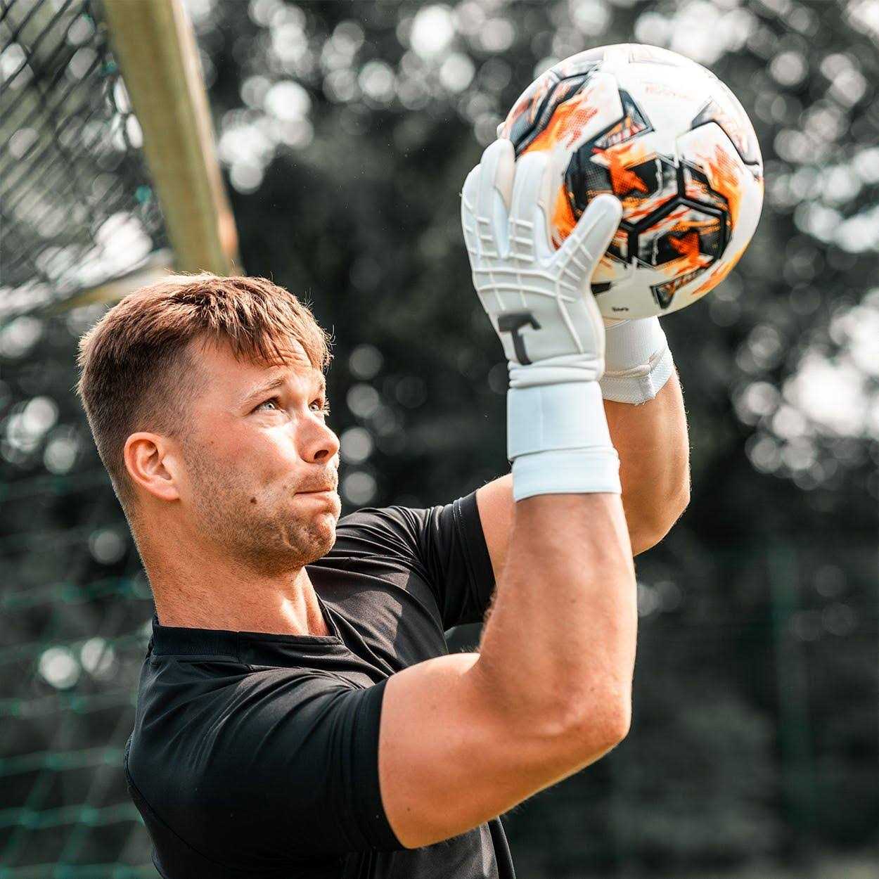THE BEAST WITH MAXIMUM CATCHING SURFACE Classy looks and extreme performance: The T1TAN WHITE BEAST 3.0 sets new standards. Catching surface optimized Hybrid Cut. Mega grippy 4mm Gecko Grip. Extended pro grip foam. Breathable and ultra-light thanks to the Mechano 2.0 backhand. Completely redesigned Silicone punching zone in aggressive Beast look. Removable straps. Hybrid Cut. Maximum catching surface to the fingertips: The Hybrid Cut was specially wrapped around your fingers to give you even more contact area. For an even easier catching ability with optimal ball control. Beast Gecko Grip. Absolute dominance: the super grippy 4mm Gecko Grip literally absorbs balls in. Extra soft pro grip foam provides extreme grip. For superior cushioning and ball control. Beast Punching Zone. Punch like a Beast: The completely new developed Punching Zone was inspired by real Beast claw marks. The horizontal and vertical grooves give you even more grip when punching. Mechano 2.0 Textile. Ultra-lightweight and breathable, the high-performance Mechano 2.0 textile on the backhand makes every match a breeze. For optimum ventilation and an even better wearing feeling. Comfortable fit. Comfortable fit without slipping: The glove was specially developed for keepers who like it looser. For even more freedom of movement and at the same time super reliable grip. Removable straps. Your game. Your decision: The elastic and removable straps stabilize your wrists effectively. Easily removable and adjustable at any time.