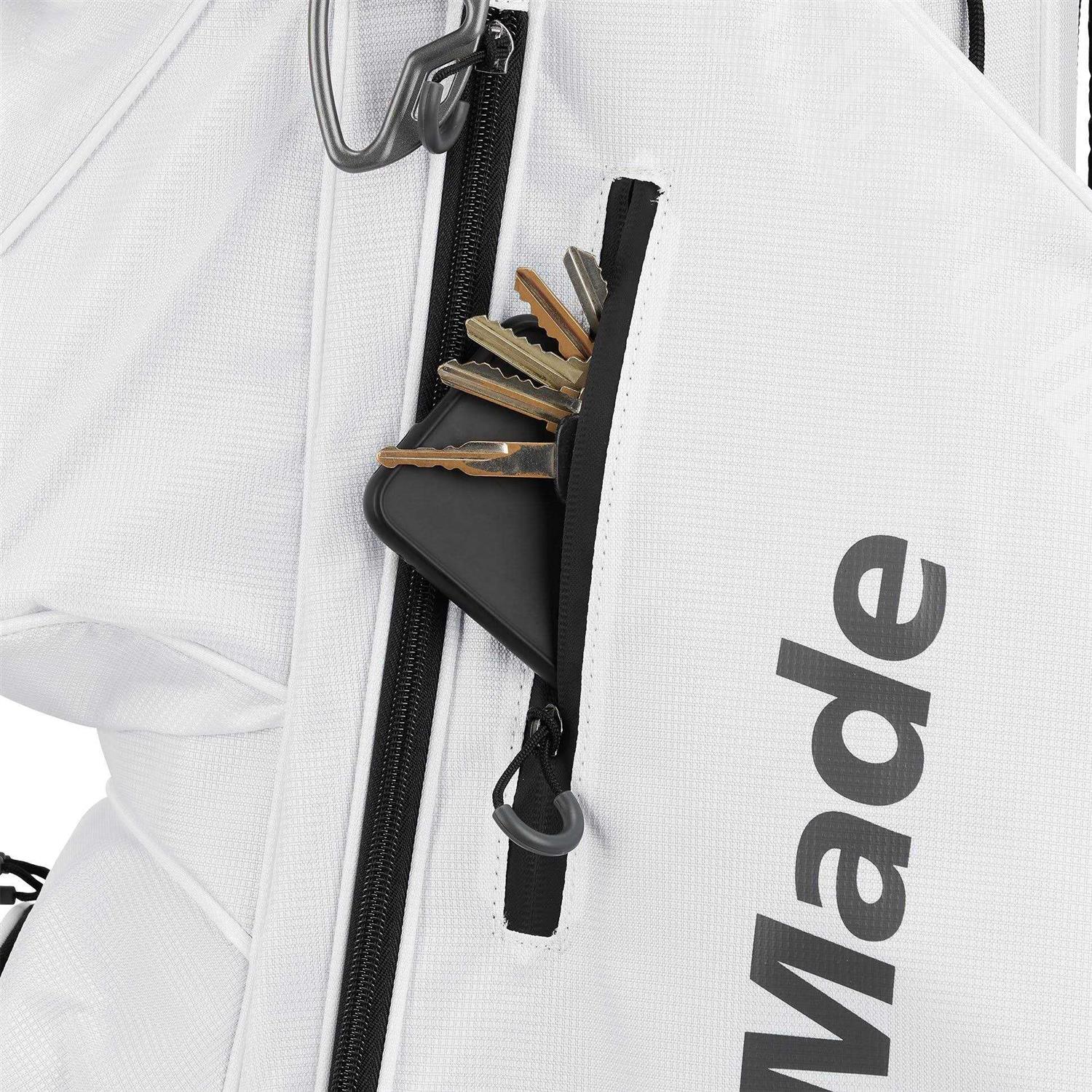 - 5.5 lbs. 14 Way Top. Dedicated Putter Well. 8 Pockets. Full Zipper valuables pocket.