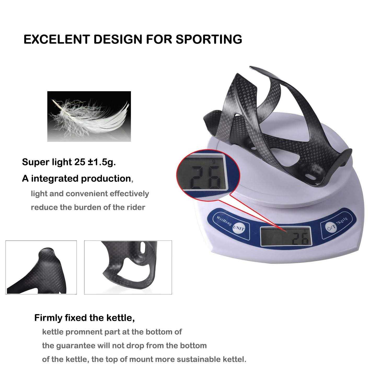 100% FULL Carbon Fiber Material – Incredible strong and lightweight(only 25±1.5g), non-deformable and corrosion resistant. Holding power keeps the bottle in place when riding over rough terrain. Easy to install,designed to offer secure bottle hold and easy bottle removal. Perfect for those who want a stylish cage to lighten their load as they ride. Size – The bottle cage is around 2.83 inches (7.2cm) in diameter, fit bottle dia. 2.79-2.95 inches (7.1- 7.5cm),bottle too big or too small may not fit firmly. International products have separate terms, are sold from abroad and may differ from local products, including fit, age ratings, and language of product, labeling or instructions.