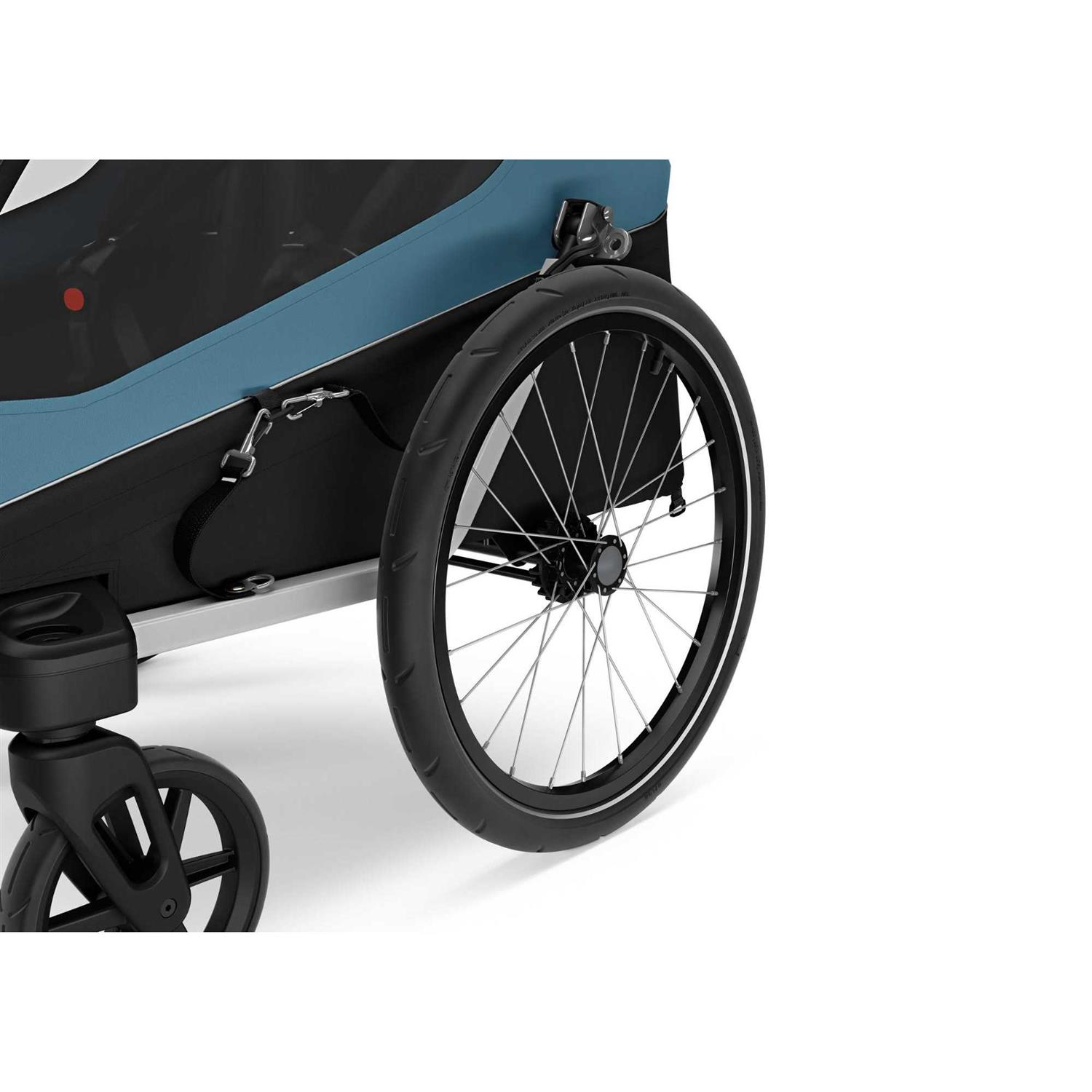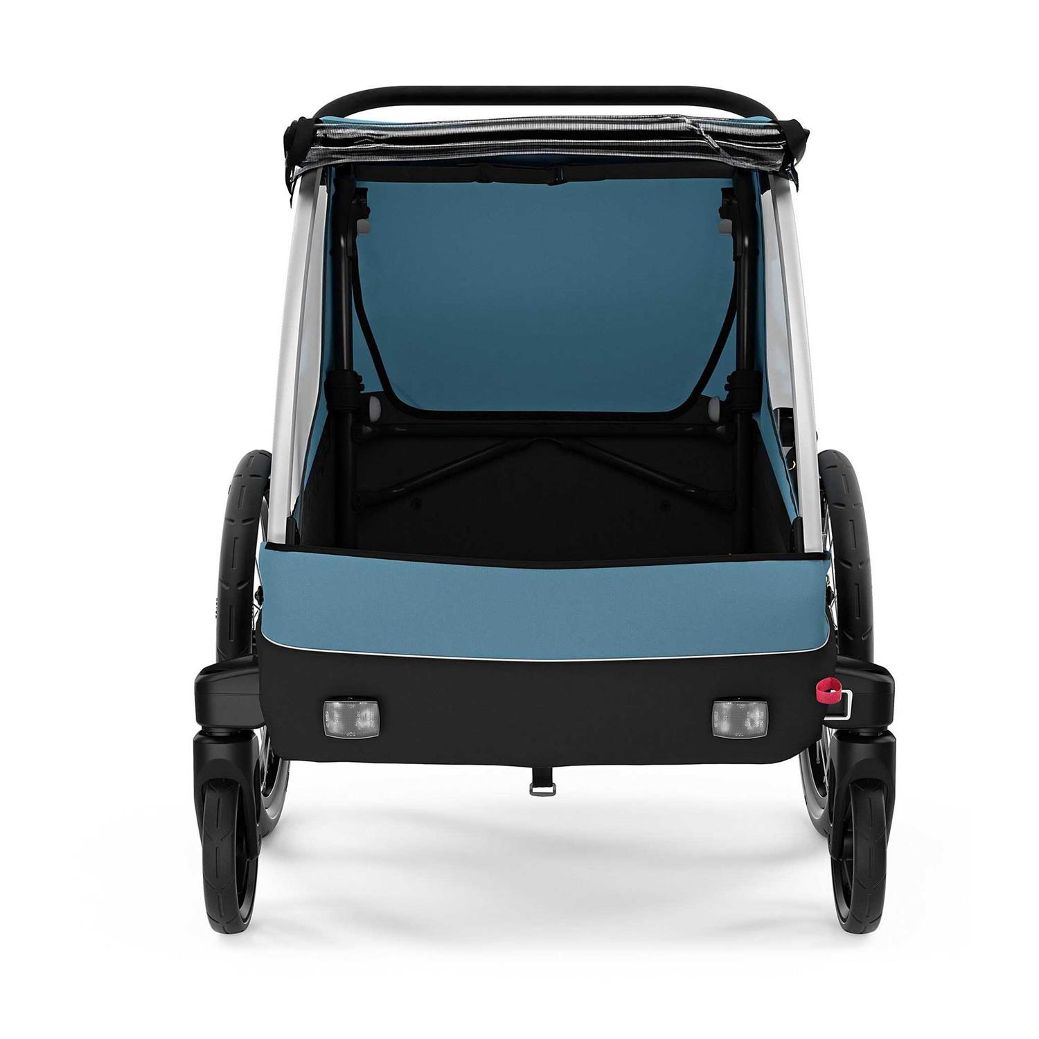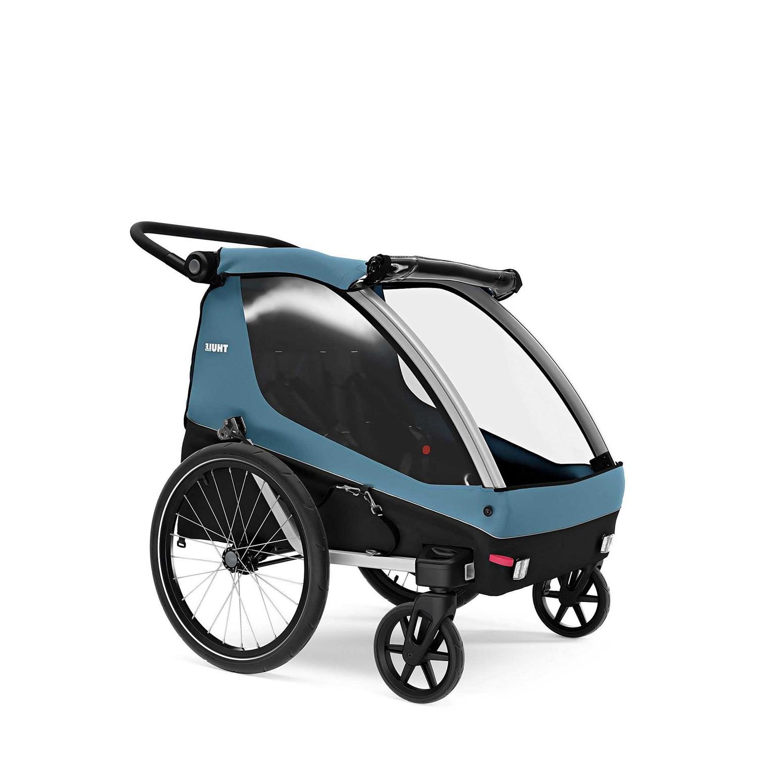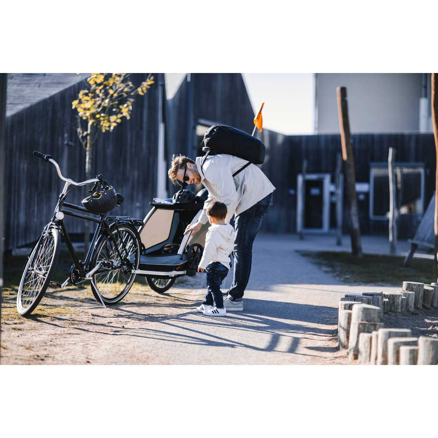 Thule Courier is a versatile bike trailer for all types of families. This durable carrier is perfect for long rides as a family or for quick trips into town with its roomy cockpit for two children. It’s great for commuting and taking kids to school – and when you arrive, it easily converts into a stroller with compact wheels for maneuvering in crowded areas and a fully adjustable handlebar for parents. This comfortable bike carrier also features the option to fully convert into a cargo trailer and more. Thule Courier can also easily convert into a cargo trailer. With a durable and sturdy cargo floor and integrated attachment points your gear stays secure at all times. Want to bring your puppy for the ride? You can! The optional dog trailer kit transforms Thule Courier into a trailer suitable for your dog. With an included soft dog bed and a roof cover with integrated rain cover you can include your best friend in your outdoor adventures.