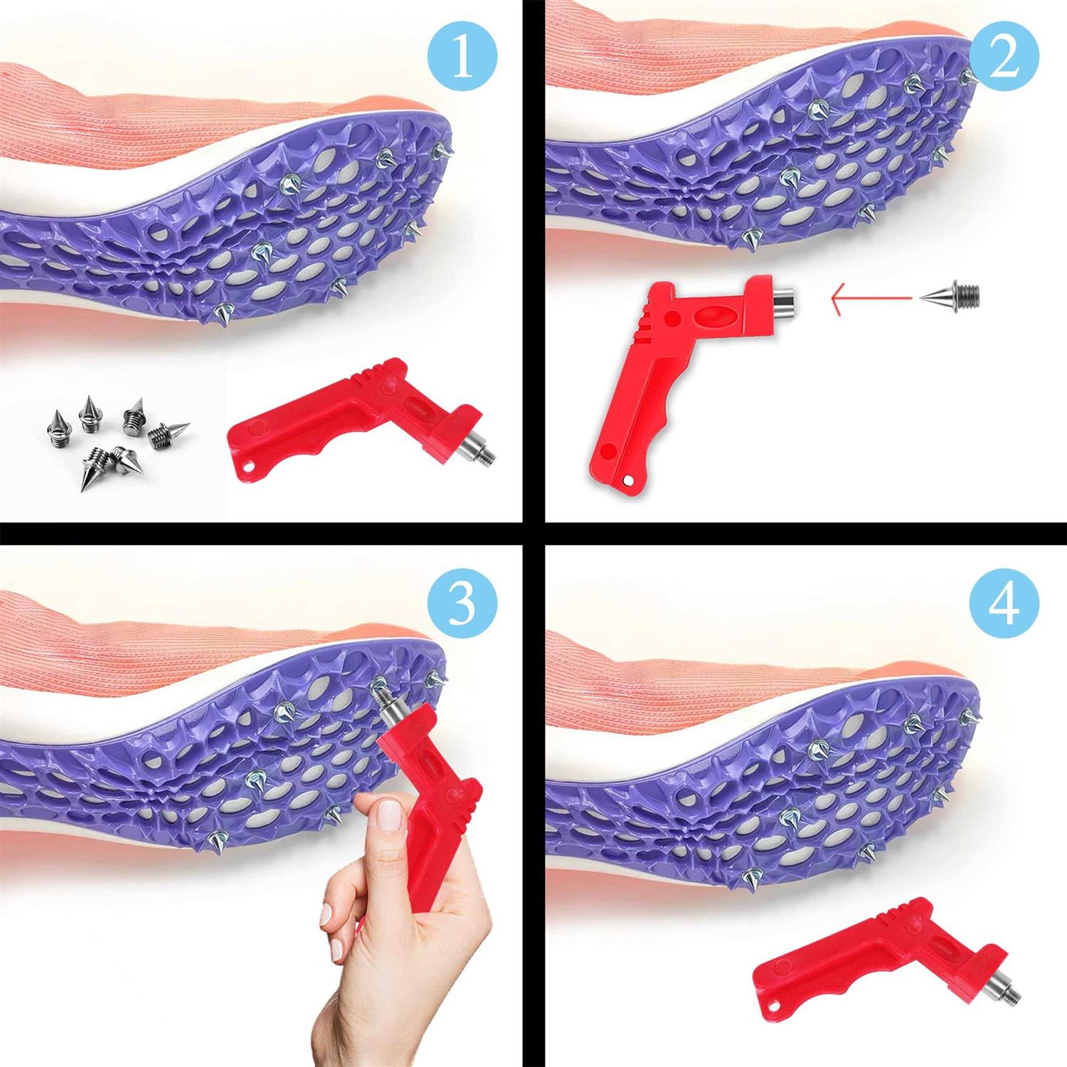 YOUR GIFT LIST: Package includes 150 PCS silver track shoe spikes with 1pcs spike wrench. and the spike wrench is plastic, not easy to break, convenient for you to change the spikes. Have enough quantity for your use and replacement. QUALITY MATERIAL: Made of quality stainless steel, 1/4 inch durable and rust-resist and anti-corrode, not damage track, ensure you to use for a long time. Help you achieve better results, improve your running balance of traction. SECURITY AND FUNCTIONALITY: These shoe spikes are designed with pyramid needle shape Add to the friction between the shoe sole and ground, thus can resist skid to keep you safety. especially for running and other sports activities. EXTENSIVE USAGE: The spikes provide optimal grip for track and field or dry terrain in cross-country, Except for track and cross country, it is also suitable for running, golf and other outdoor sports activities, ideal for track sprints, long jump, running, outdoor sports activities. All your questions will be replied to within 24hrs! All your questions will be replied to within 24hrs! br br What are you still hesitating about? /b br