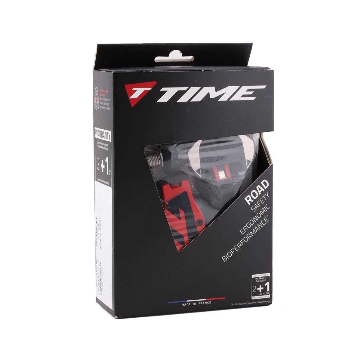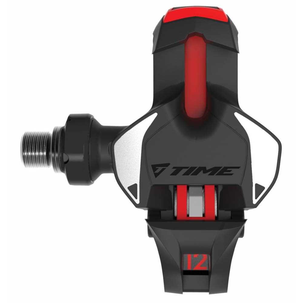 Black / Red The Time Xpro 12 Carbon Pedal is a single sided clipless, ultra light master piece with an adjustable Carbon Blade to optimize the riders preference in engagement tension. The low stack height holds the riders shoe as close to the axle as possible with a large pedal surface to maximize transfer efficiency. There is a lower plate that acts as a fairing to improve the aerodynamics while protecting the blade from unexpected impacts. The axle and spindle are both titanium. The pedal body is carbon. These pedals are compatible with Time iClic cleats. Weighs only 183 grams. Available in Black/Red.