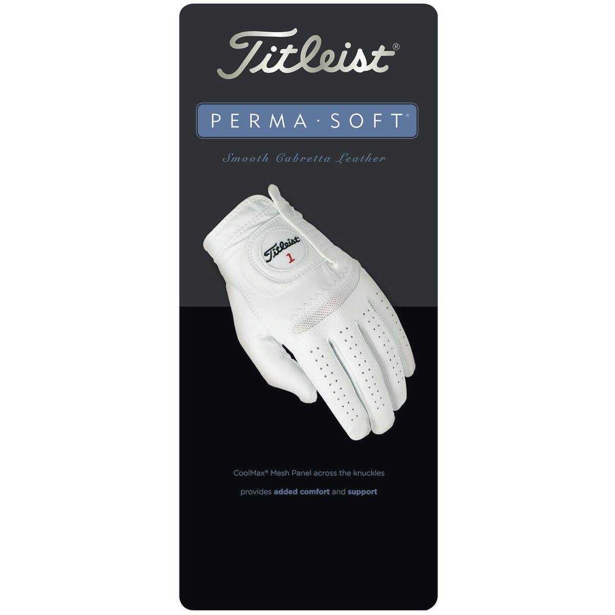 The Feel Of Premium Quality And DurabilityProviding seamless comfort, the Perma-Soft glove is made with a CoolMax mesh panel across the knuckles, providing exceptional breathability and added support.The Women’s Titleist Perma-Soft Golf Glove is perfect for the golfer looking to improve their game. Featuring a high-quality, ultra-soft leather construction, this glove is designed to provide superior grip, comfort, and durability. The glove is tailored to fit the shape of a woman’s hand, providing increased mobility and control while on the course. The advanced moisture-wicking technology keeps your hands dry and comfortable, even on the hottest summer days. The Titleist Perma-Soft Golf Glove is sure to give you the edge you need to take your game to the next level. Get your hands on the Women’s Titleist Perma-Soft Golf Glove and experience the ultimate in golf performance.