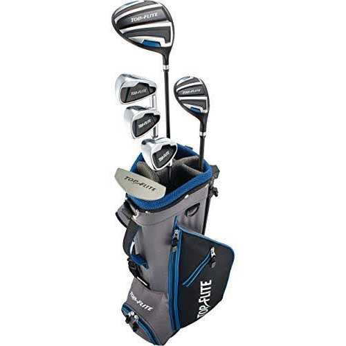 Prepare your golfer for the first tee with the Top Flite Kids?? Complete Set. Designed for golfers ages 5-9 and height 46?? C 52??, this set includes an aerodynamic driver and hybrid, both with low CG, for optimized launch and distance. A wide sole 7 iron and Sand Wedge both feature perimeter weighting for greater playability. A mallet putter and deluxe stand bag add functional quality to the Top Flite Kids?? Complete Set. EQUIPMENT FEATURES: Complete Set designed to outfit aspiring golfer with everything needed for on-course success Set composition and specs engineered for golfers ages 5 to 9 and height 46?? C 52?? 360cc Ti composite driver features low/back Center of Gravity for maximum distance and forgiveness Easy-to-hit hybrid replaces long irons and combines the accuracy of an iron with the forgiveness of a fairway Wide sole stainless steel 7 iron features perimeter weight placement for unmatched forgiveness Sand Wedge features a low Center of Gravity for incredible performance around the green Unique mallet putter with alignment cutouts ensures proper aim and stroke consistency Driver, Hybrid, Iron and Wedge fitted with graphite shafts for enhanced club head speeds Durable nylon headcovers for the Driver and Hybrid provide protection between uses STAND BAG FEATURES: 6.5??, 5-way top with padded mesh collar construction for club organization and protection Adjustable, padded dual carry straps enhance comfort and balance for a hassle-free carry 4 pockets provide plenty of storage options for important on-course gear and accessories Pockets include a large garment pocket, valuables pouch and ball pocket Constructed of durable nylon material for added quality Stand bag weighs approximately 2.6 lbs.
