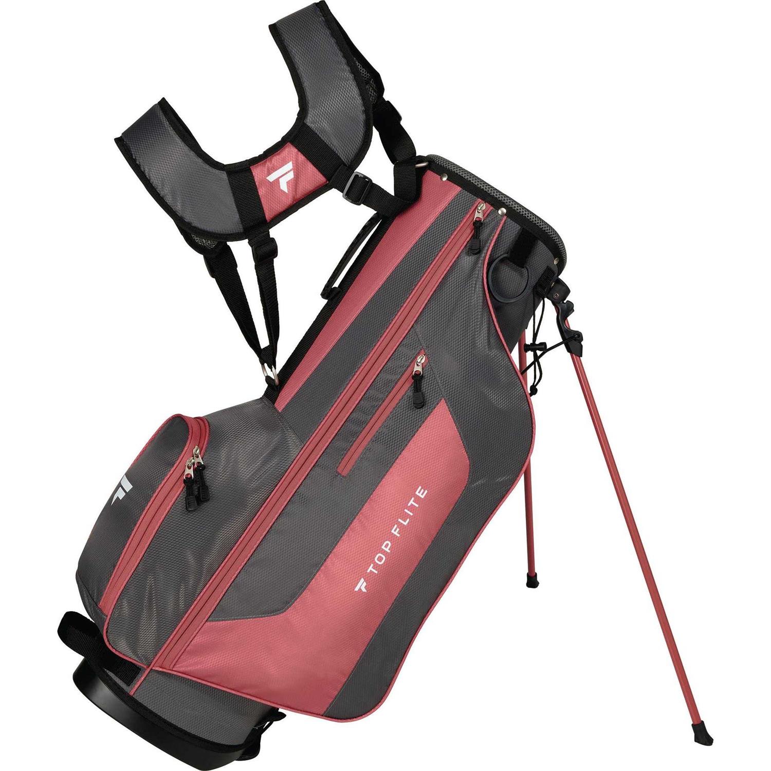 What’s includeddriverfairway wood5h hybrid6, 7, 8, 9, w ironsputterdriver, fairway, hybrid headcoversstand bagequipment features460cc titanium composite head driver boasts the largest head size allowed by usga and gives great distance off the tee with ultimate forgivenesslow profile fairway wood offers higher and straighter ball flightthe hybrid give the distance of a fairway wood with the accuracy of an ironwide sole stainless-steel irons benefit off-center strikes and offer improved flight on high shots with a low center of gravityalignment putter offers a visual reminder for shot placement and alignment to ensure proper aimprotect your driver and fairway wood with high quality matching head coversstand bag features6-way topper with full-length organizing dividers and padded mesh to protect your clubssecure a towel or glove to your bag with an integrated hook and loop towel ringvaluables pocket let you place smaller items out of way while on the coursecomfortably transport the bag with a connected shoulder strapgolf balls pocket lets you easily store and grab golf balls in a convenient locationlift handle offers easy pick up and transport.