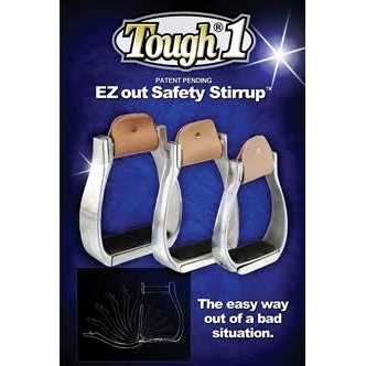 Designed for long-lasting function, the Tough-1 EZ Out Safety Stirrup is made from high quality aluminum with a 3-inch neck. Spring-loaded rubber grip treads make these stirrups easy and safe to use. About JT InternationalFor over 35 years, JT International has been providing riders with quality equestrian equipment designed to maximize the riding experience. With over 1,100 different types of products available, they offer new and time-honored favorites to riders all over the world. From tack to training supplies, JT International has each rider and their mount covered.
