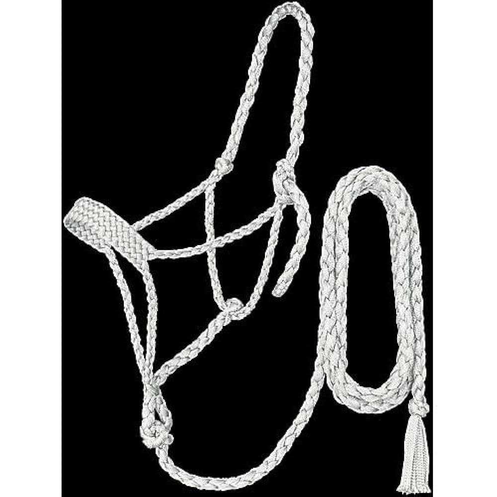 Tough 1 Halter and Lead Braided Mule Tape 50-9610 Tough 1Halter and LeadBraided Mule Tape50-9610 A lightweight yet durable rope halter great for everyday use. Soft plated wide nose and braided cheeks and crown. Complete with 10ft lead.