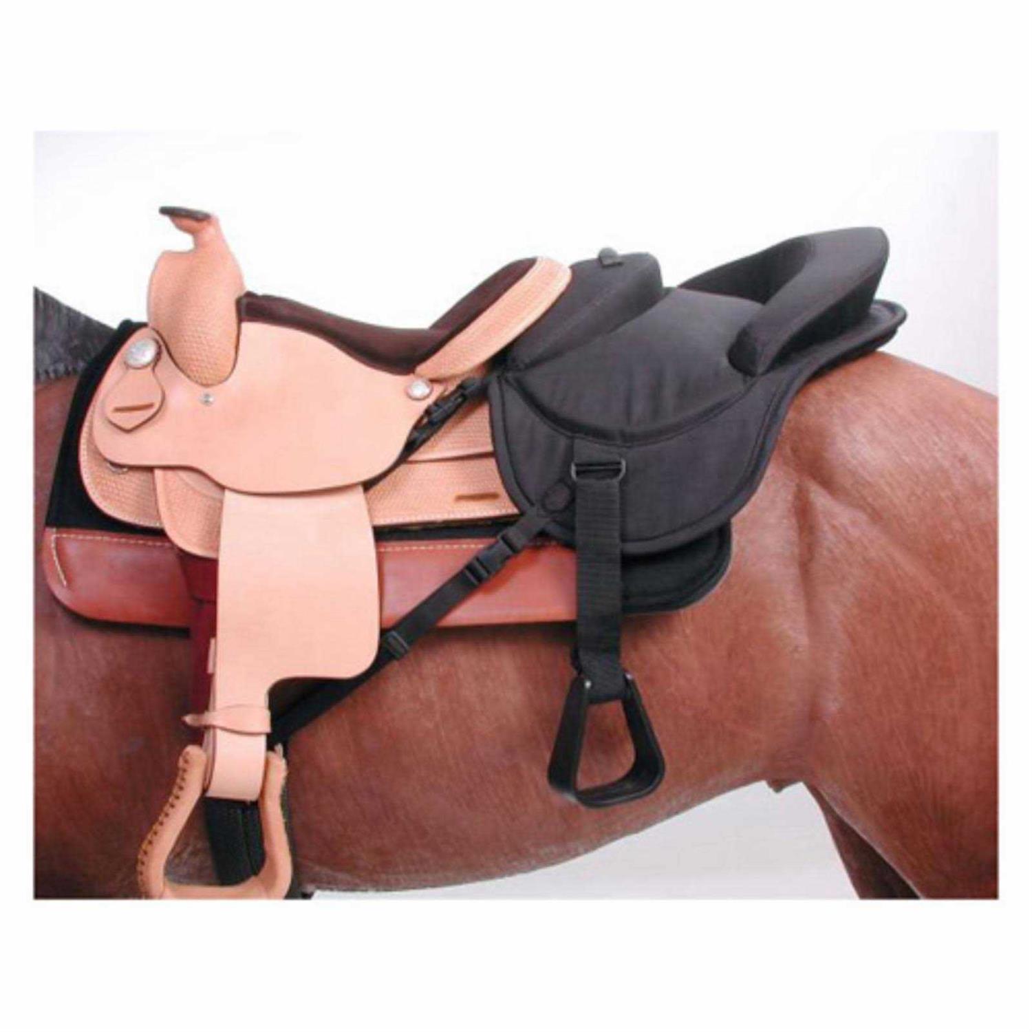 - The ride-behind tandem attaches firmly to the back of most western saddles.