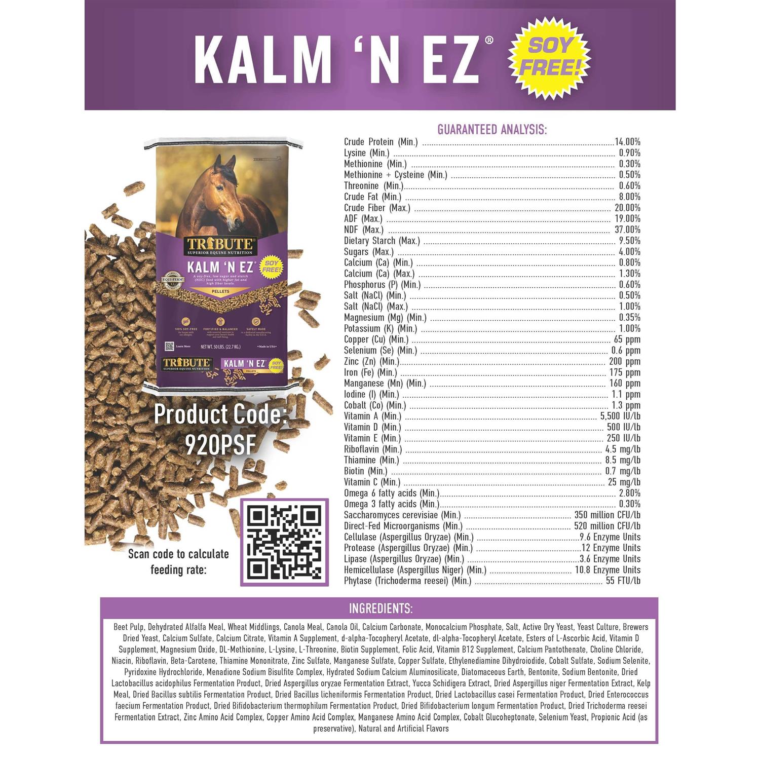 Tribute Soy-Free Kalm ‘n EZ Pellet for Horses, 50 lb Bag