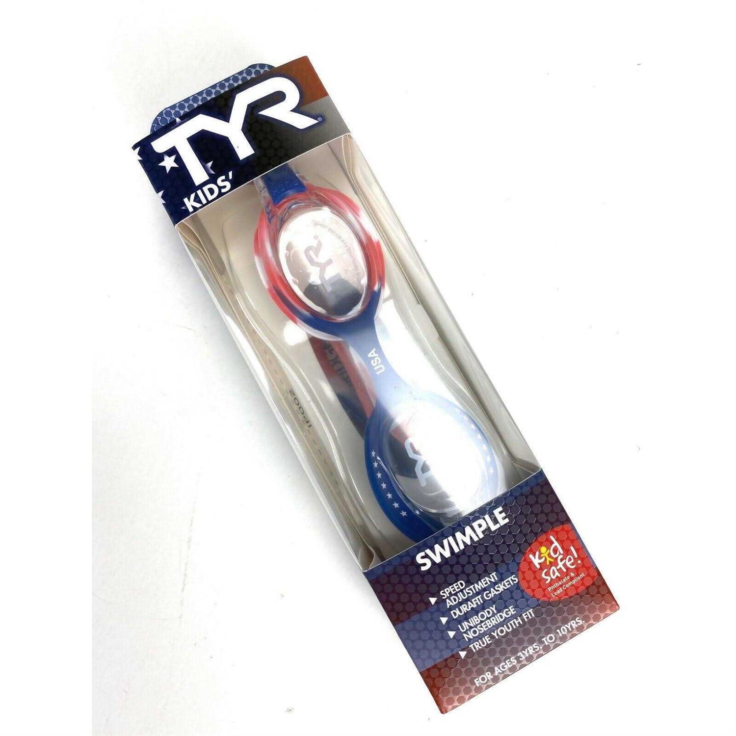 Start your swim adventure off right with the Kids’ Swimple USA Goggles. Constructed with durable, hypoallergenic Silicone gaskets and features optical grade, polycarbonate lenses with anti-fog and UVA/UVB protection. A secure release button for quick and easy strap adjustment and a small, unibody frame helps accommodate various face shape. All TYR kids’ goggles have been tested and approved in accordance with the Consumer Product Safety Commission’s guidelines.