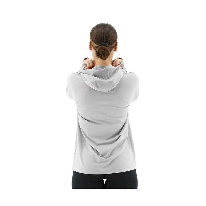 Take on the sun in style with the TYR Women€ s SunDefense Hooded Shirt. Equipped with UPF 50+ and SunDefense QuickDry technology, this shirt is designed for ultimate sun protection and comfort. Perfect for any outdoor activity, the loose cut and full length sleeves with thumbholes provide maximum coverage while the breathable QuickDry fabric ensures you stay cool and dry. With 360 degree range of motion and moisture-wicking technology, you can move freely with ease. So gear up and tackle any adventure with confidence in the TYR SunDefense Hooded Shirt.Product