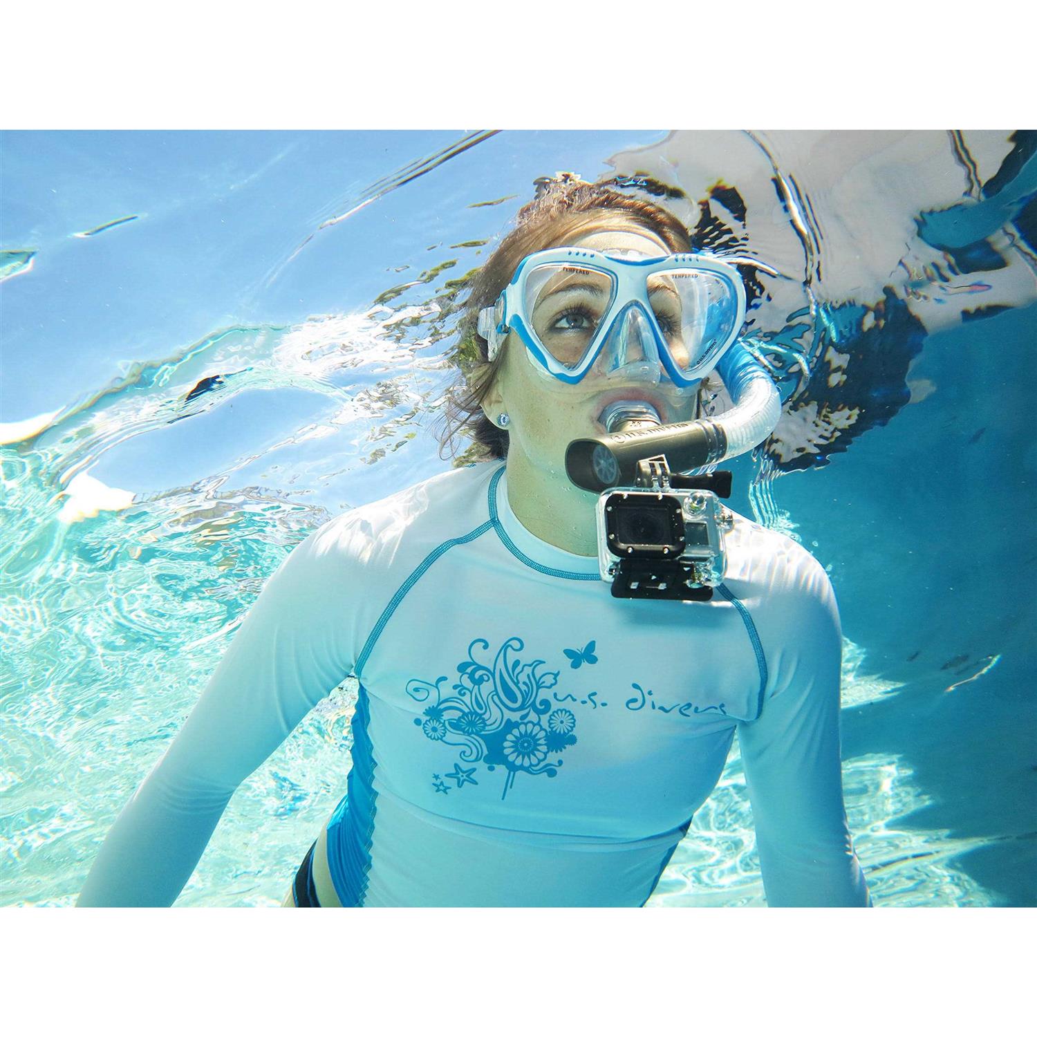 - Submersible dry top snorkel, designed to keep water out of the breathing tube with an ergonomic mouthpiece and GoPro ready camera mount