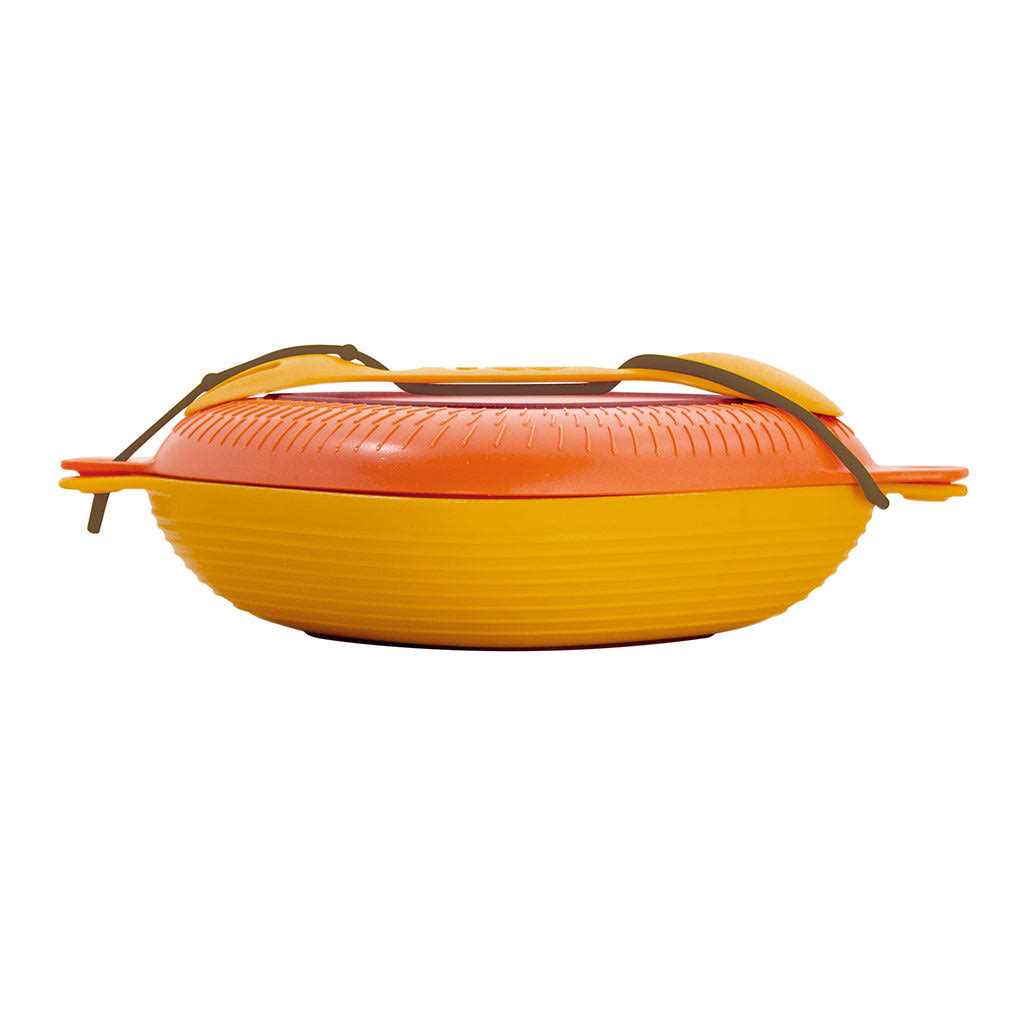 - Kit includes a 690ml bowl, a 561ml lid that doubles as a plate, a 3-in-1 utensil set, and a stretchy tether to hold it firmly together