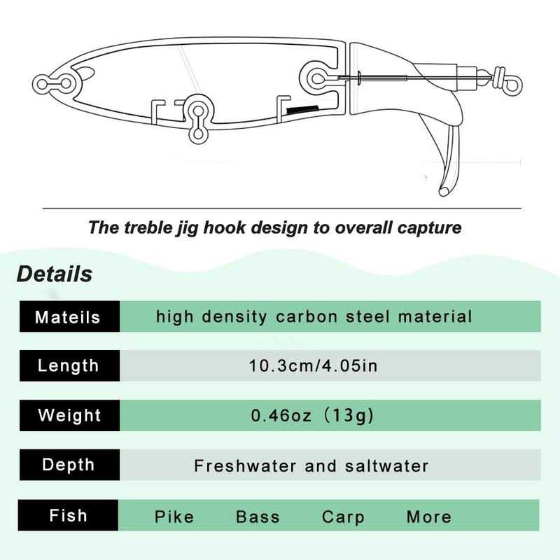 【Real Visual Experience】The bass topwater lure has perfect size and awesome colors that give you a real visual experience. Multi-layer reflective finish and 3D realistic eyes can attract more fish. They look like real fish in the water. 【Sharp Hooks】Each bass fishing lure has 2 treble hooks which include super sharp needle points and barbs, the hooking rate is increased, the penetrating power is wonderful, effectively prevent fish from escaping. 【Topwater Blow Up】The distinctive action of topwater lures can calls fish from great distances, prompting explosive strikes every time. When you rapid and steady retrieve the plopper lure, the rotating tail will spin and make plopping sound and splashed water, no bass will be able to resist taking a bite. 【Well Design】This rotating tail lure has extra weight on the gills and belly, and the weight at the belly is greater than the gills, which is more conducive to creating continuous spray, and this special design can better control barycenter and make it do a farther casting distance effortless. 【What you will get】You will receive 6 bass fishing lures of different colors and a tackle box, each bait is placed in a separate grid, Our fishing lures kit is good for freshwater and saltwater. It’s powerful fishing tools for fishing enthusiasts, and great fishing gifts for anglers.