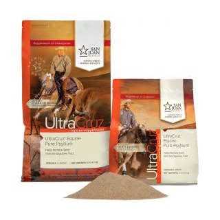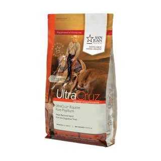 UltraCruzEquine Pure Psylliumis an equine psyllium supplement for horses that aids in the removal of built-up dirt and sand from the colon, promoting a healthy digestive tract Equine psyllium supplement supports normal intestinal function in horses Specially made from 100% pure natural psyllium husks, horse psyllium fiber supplement comes an easy to use palatable powder Ideal equine psyllium supplement for horses of all ages grazing sandy pastures or horses prone to digestive issues or sand colic Supplied as a 4 lb powder UltraCruz Equine Pure Psyllium Supplement for Horses, an equine supplement for horses that graze or eat from the ground. Equine pure psyllium is made from 100% natural pure psyllium seed husk in the form of a palatable powder to help support normal gut function in horses without the addition of extra fillers and flavoring. When a horse grazes on sandy ground, it may ingest the sand and dirt, which accumulates in the intestinal tract. Combined with water, psyllium husks form a gelatinous substance that flows through the horse’s intestinal tract. This substance may naturally help support the removal of sand from the ventral colon and other parts of the intestinal tract and help in reducing the risk of sand colic. For best results, use UltraCruz Equine Pure Psyllium Supplement for Horses for horses as a monthly supplement to help sand removal and support normal digestive function in your horse.