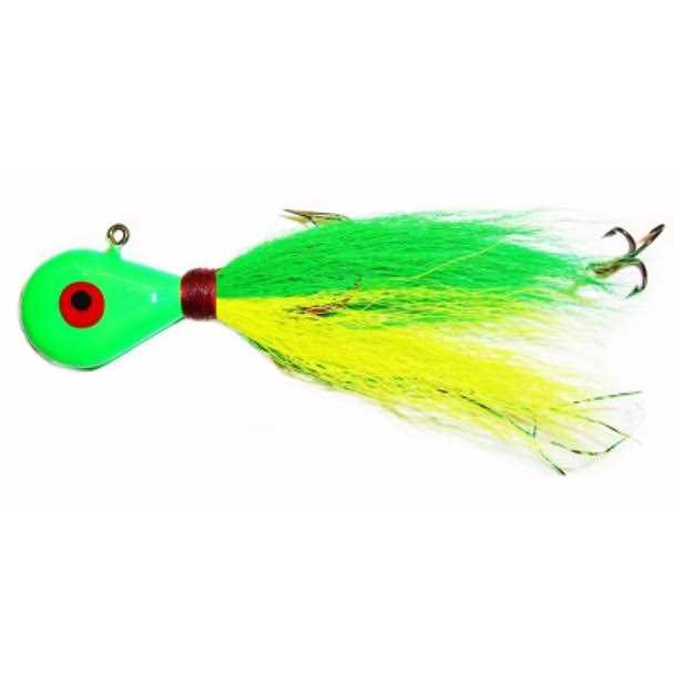 Designed for vertical jigging, the High Dollar Jig is a walleye catching machine. The oversized flat profile of the jig head enhances its darting and rolling action. Neon colored real bucktail hair fibers come to life under water, creating a life-like pulse when jigged.