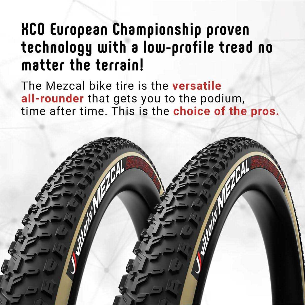 The Mezcal is the versatile all-rounder that gets you to the podium, time after time. Ride a combination of terrain This is the choice of the pros. The Mezcal features a unique low-profile tread that is tightly spaced in the center, for low rolling resistance and durability. Countless effective edges work together to grip on a variety of terrain, while directional siping on each knob make traction in the roots and rocks. The best tires are built with the best casing and compound, and the Mezcal TNT is no exception. Using the proprietary Graphene enhanced 4C compound, the Mezcal attains the holy grail of XC tires grip, durability, and low weight. 4 compounds in the tread (4C) for increased wear life. Alternating center-ridge tread for low rolling resistance. Functionalized GRAPHENE 2.0 compound delivers ultimate wet grip. Numerous effective edges for cornering, braking, and climbing traction. XC tire with densely packed, low profile, knob configuration for maximum speed.