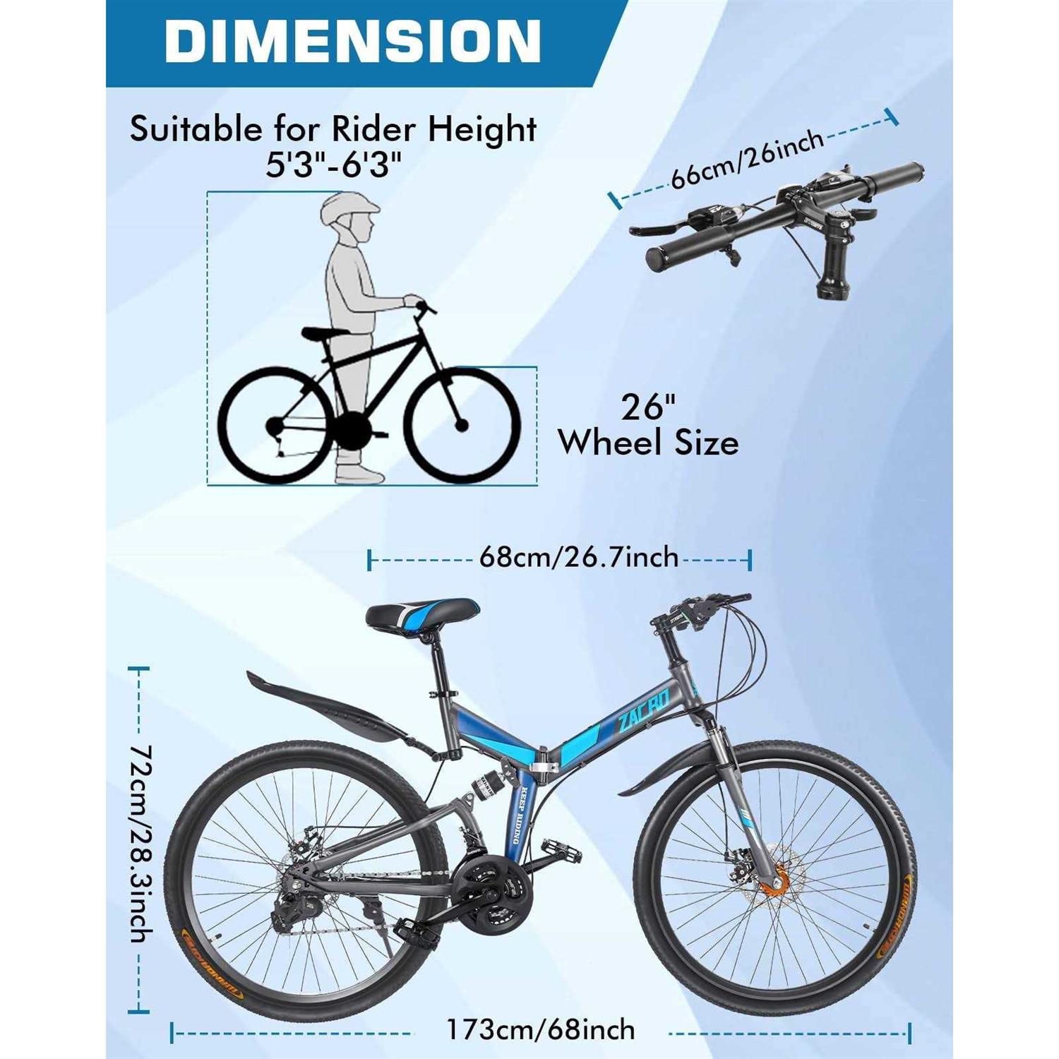 Zacro 26 Inch Folding Mountain Bike 24 Speed Dual Disc Brake Alloy Wheels Men Women Adults Youth